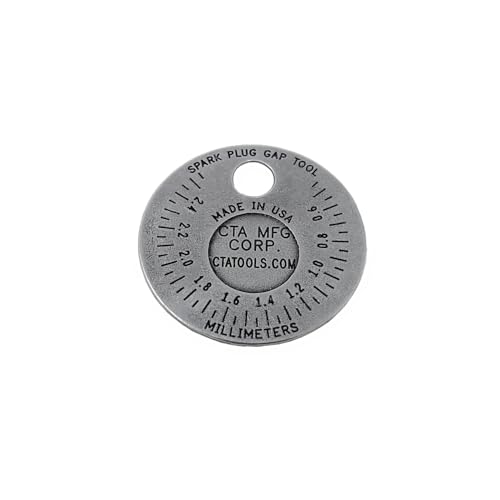 The CTA Tools 3235 Spark Plug Gapper is a compact, easy-to-use tool designed for quick spark plug inspections and adjustments. Measuring gap ranges from 0.020" to 0.100", this tool helps ensure consistent ignition performance and smoother engine operation. Constructed from durable plated steel, it resists corrosion and maintains accuracy through years of service. The convenient coin-style design fits comfortably in your pocket or toolbox, making it ideal for quick checks in the shop or on the go. Please note, the CTA 3235 Spark Plug Gapper is intended as a quick-check reference tool for verifying approximate gap sizes within a normal tolerance range. Minor variances are acceptable for general service use. For applications requiring precise calibration down to the thousandth of an inch (such as a perfect 0.028" or 0.71mm), use a precision feeler gauge for final verification. Whether you’re performing a routine tune-up or checking plug condition between races, the CTA 3235 delivers reliable, fast, and convenient results—every time. California Prop 65 - Warning, This product contains chemicals known to the State of California to cause cancer, birth defects or other reproductive harm.