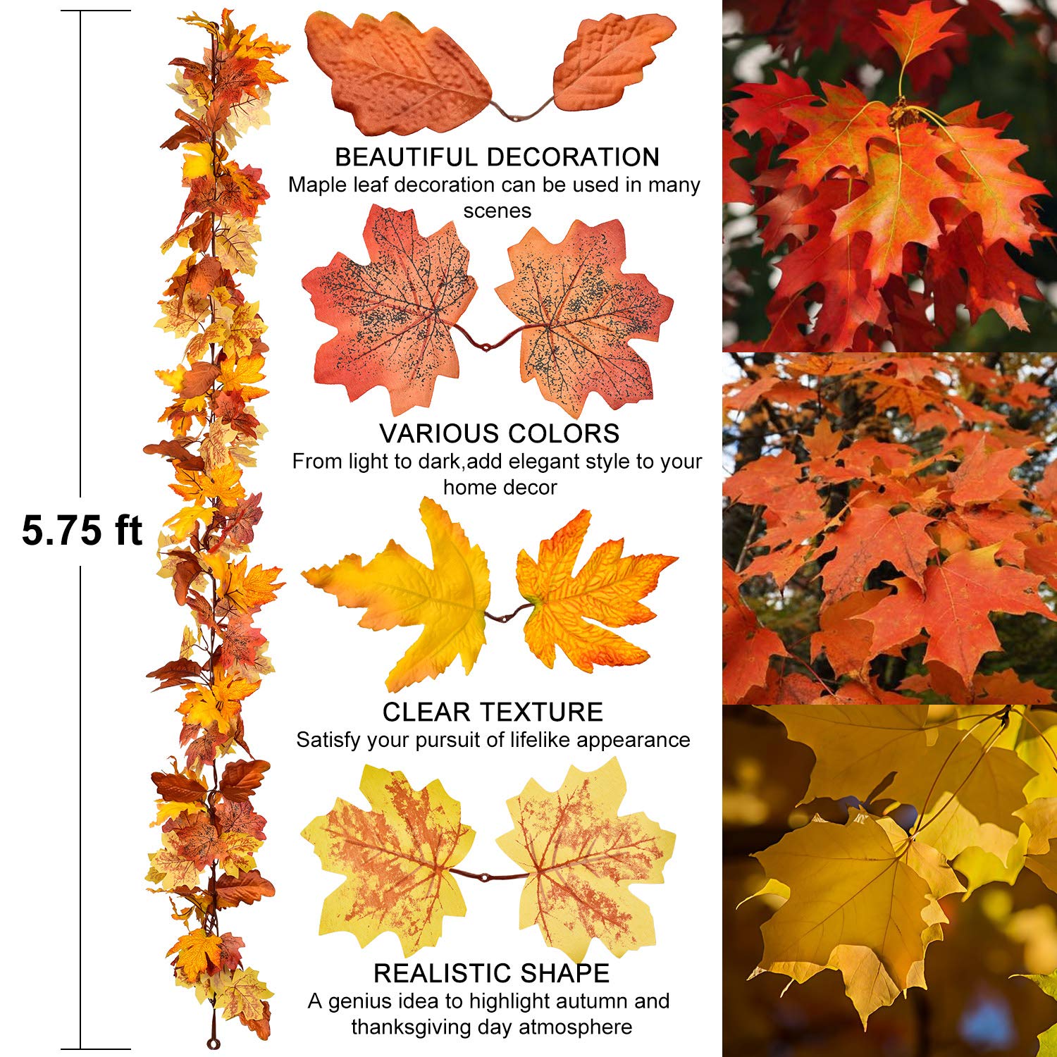 【Superior Material】 The maple leaves are made of quality plastic and silk cloth leaves, durable and vivid; The garland stems are made of flexible wire.