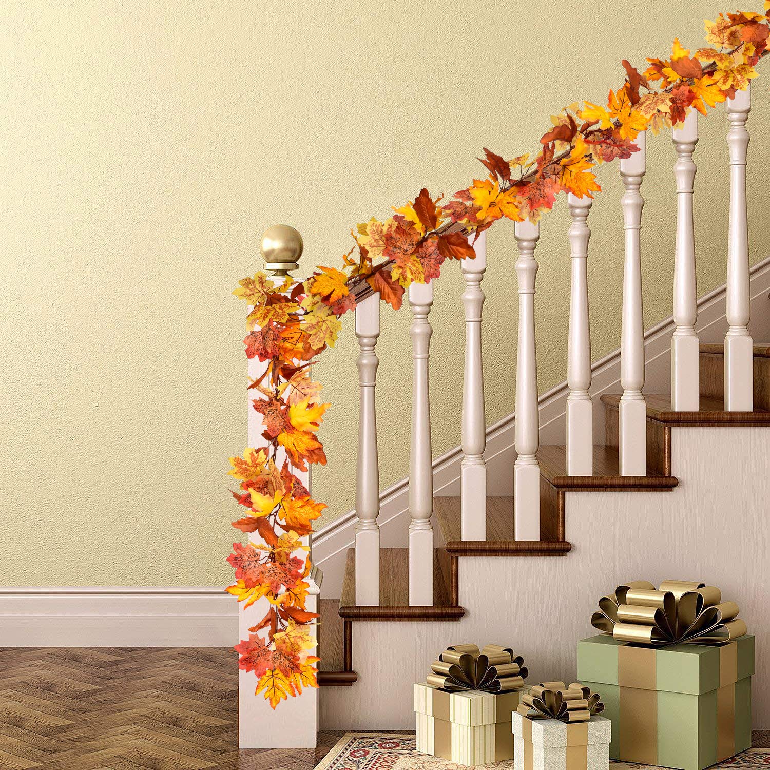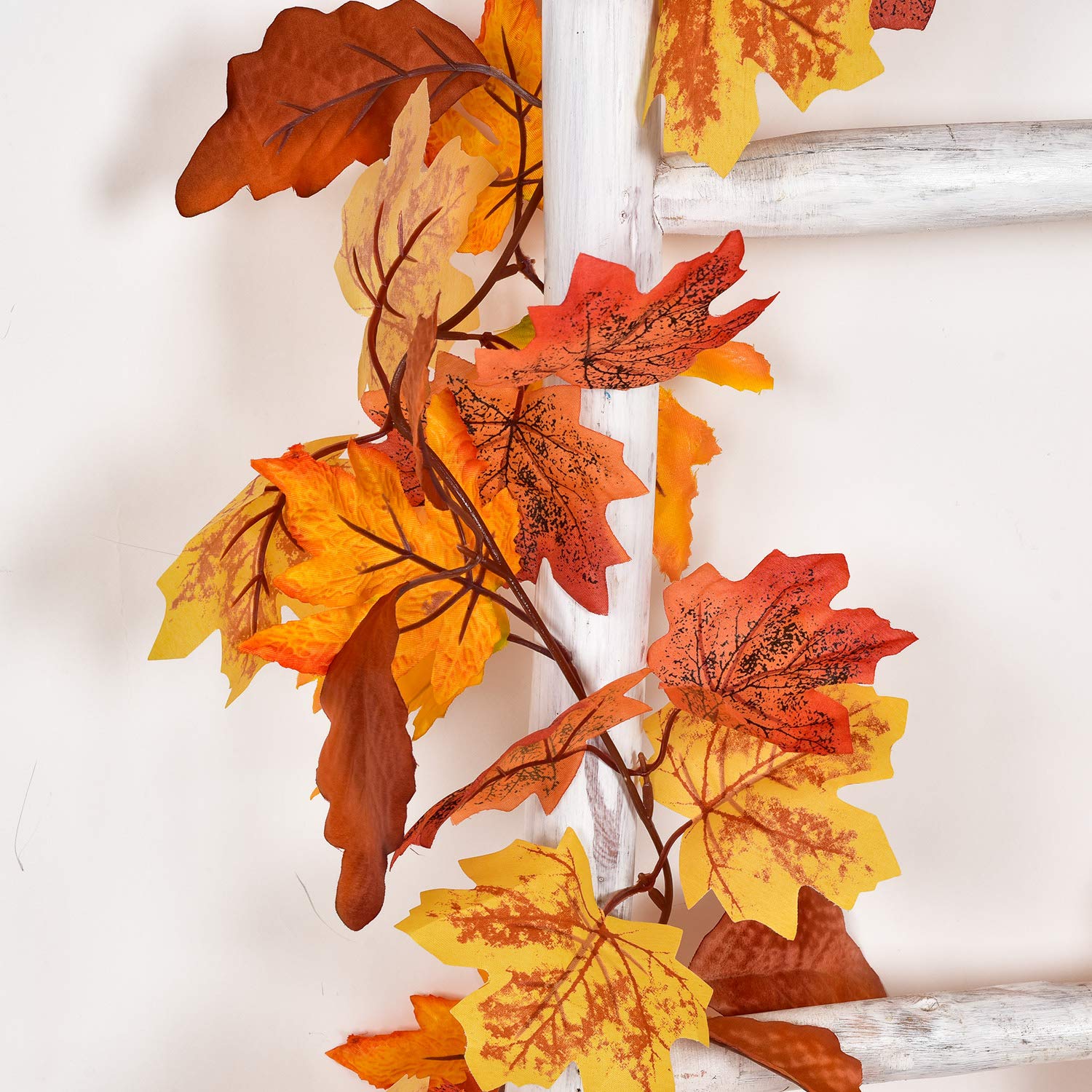 【Realistic Fall Leaves Garland】The 7 colors of the maple leaves range from dark green to vibrant orange, look like the real fallen leaves, making for a great blend of colors to warm up any room. Perfect festival decorations for indoor or outdoor.