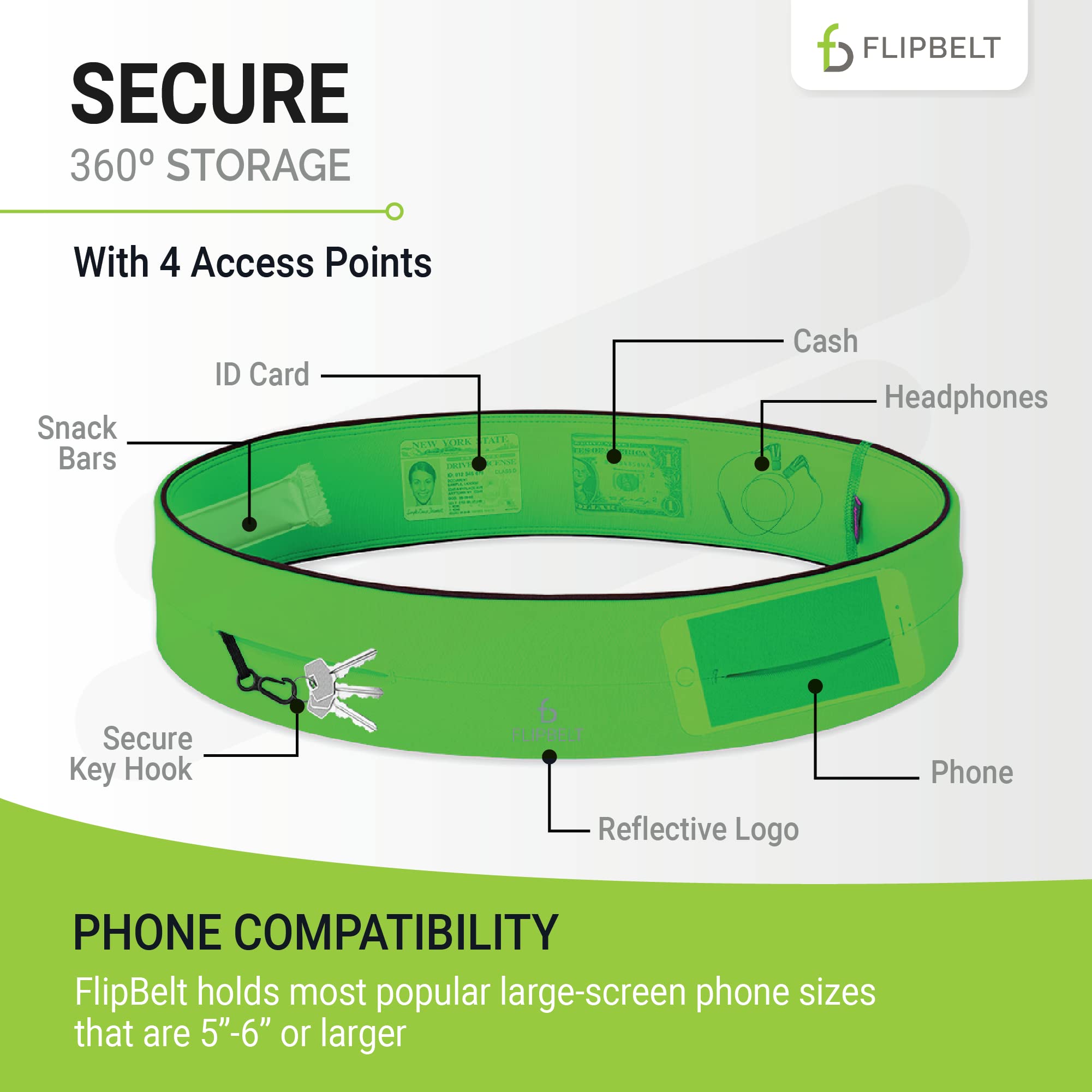 MONEY & PHONE POUCH: The FlipBelt features 4 pocket openings to slip in all your must-have items, like cards, cash, and earphones, and it even has an internal key hook for added security. It’s bounce-free storage for your phone during your workout and is compatible with screens 5"–6" and larger.