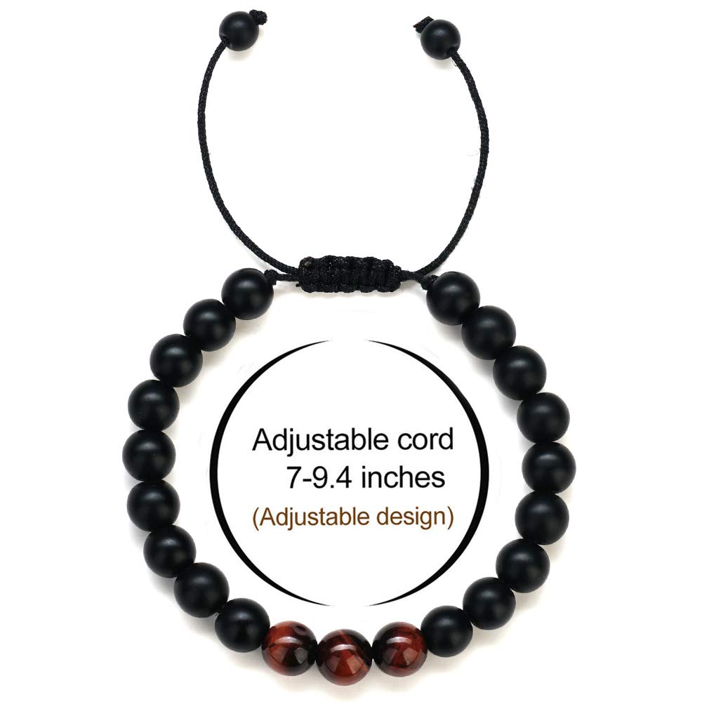 SIZE: This tiger eye stone and black matte agate stone bracelet with adjustable cord, inner length is from 6 inches to 12 inches. Suitable size tiger eye bracelet for men and women wearing.