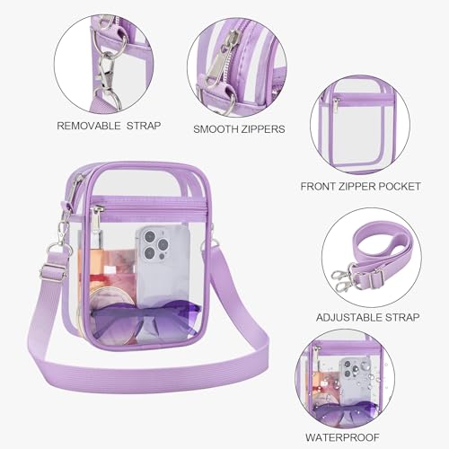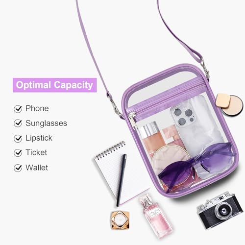 【Suitable Capacity】One main compartment can hold a small wallet, phone, lipstick, pen, tissues, and sunglasses, while the front pocket can hold keys, cash, cards, and tickets, making our clear bag an essential for your concert outfit.