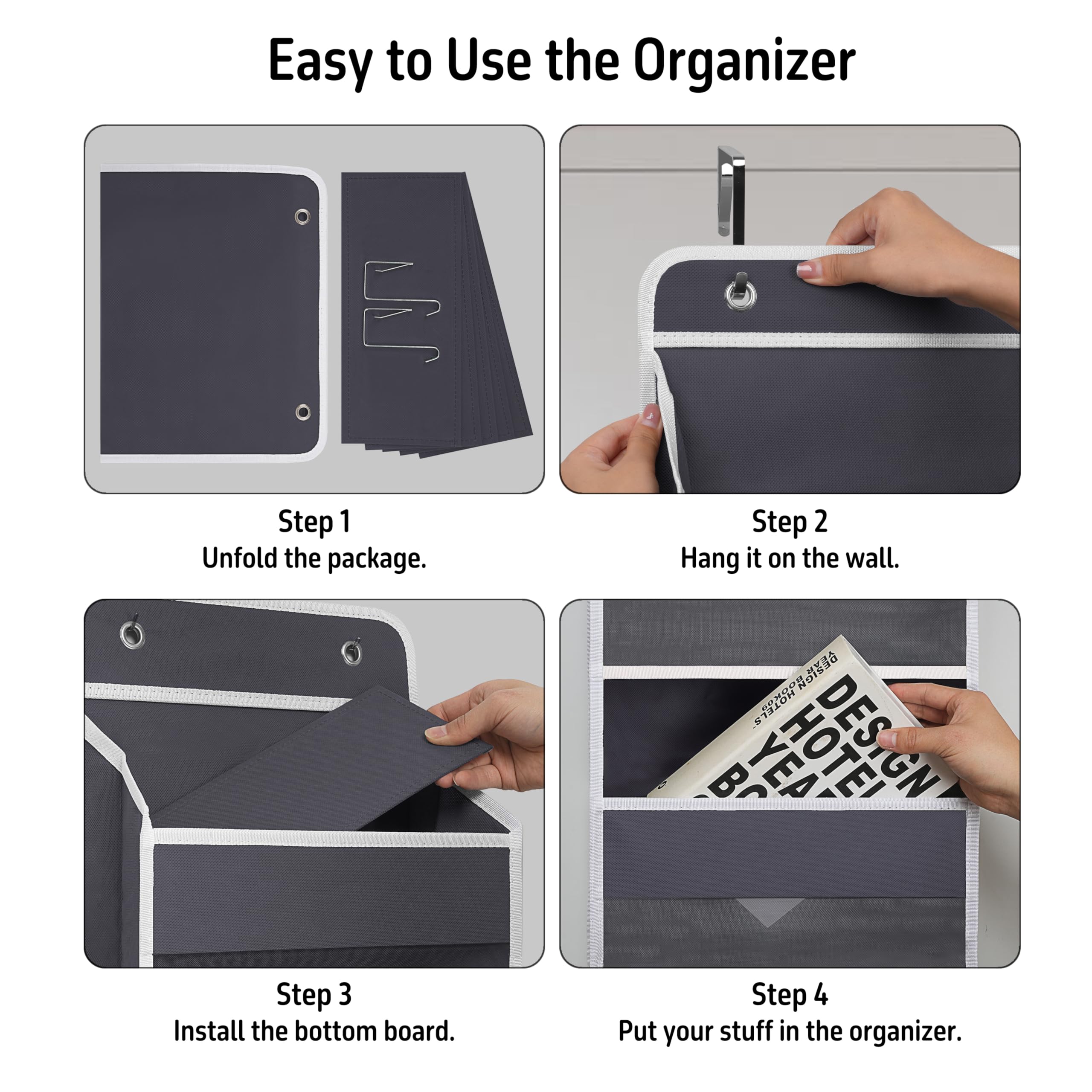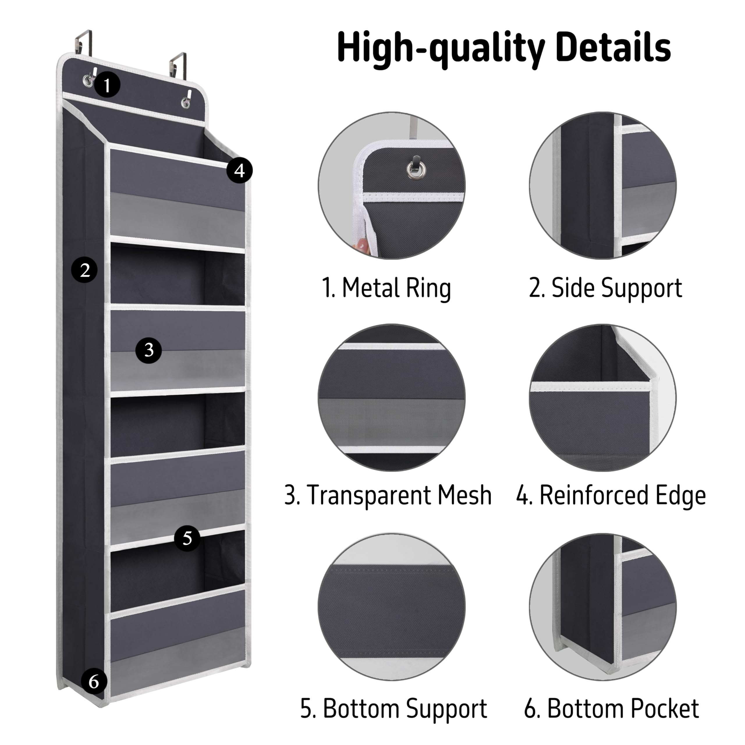 EFFORTLESS INSTALLATION - No hardware required; simply hang the organizer using the adjustable metal hook that fits most doors, ensuring a hassle-free setup process.