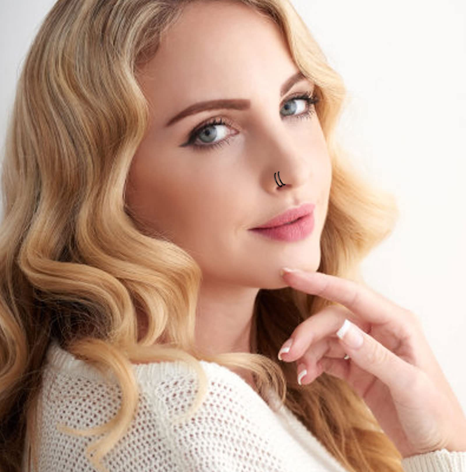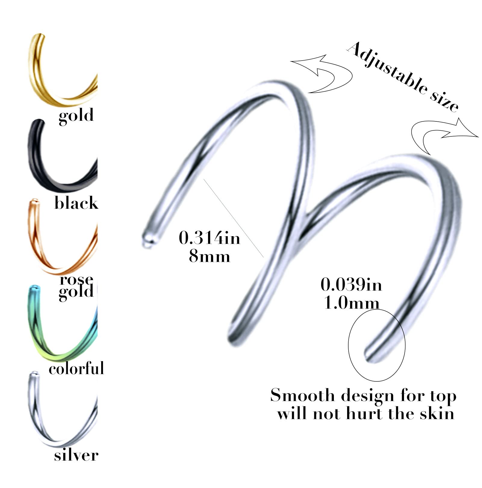 Before wearing the spiral nose ring for the first time. remember to disinfect it with alcohol.The material of the double nose ring hoop is hypoallergenic stainless steel. It is suitable for long time wear.