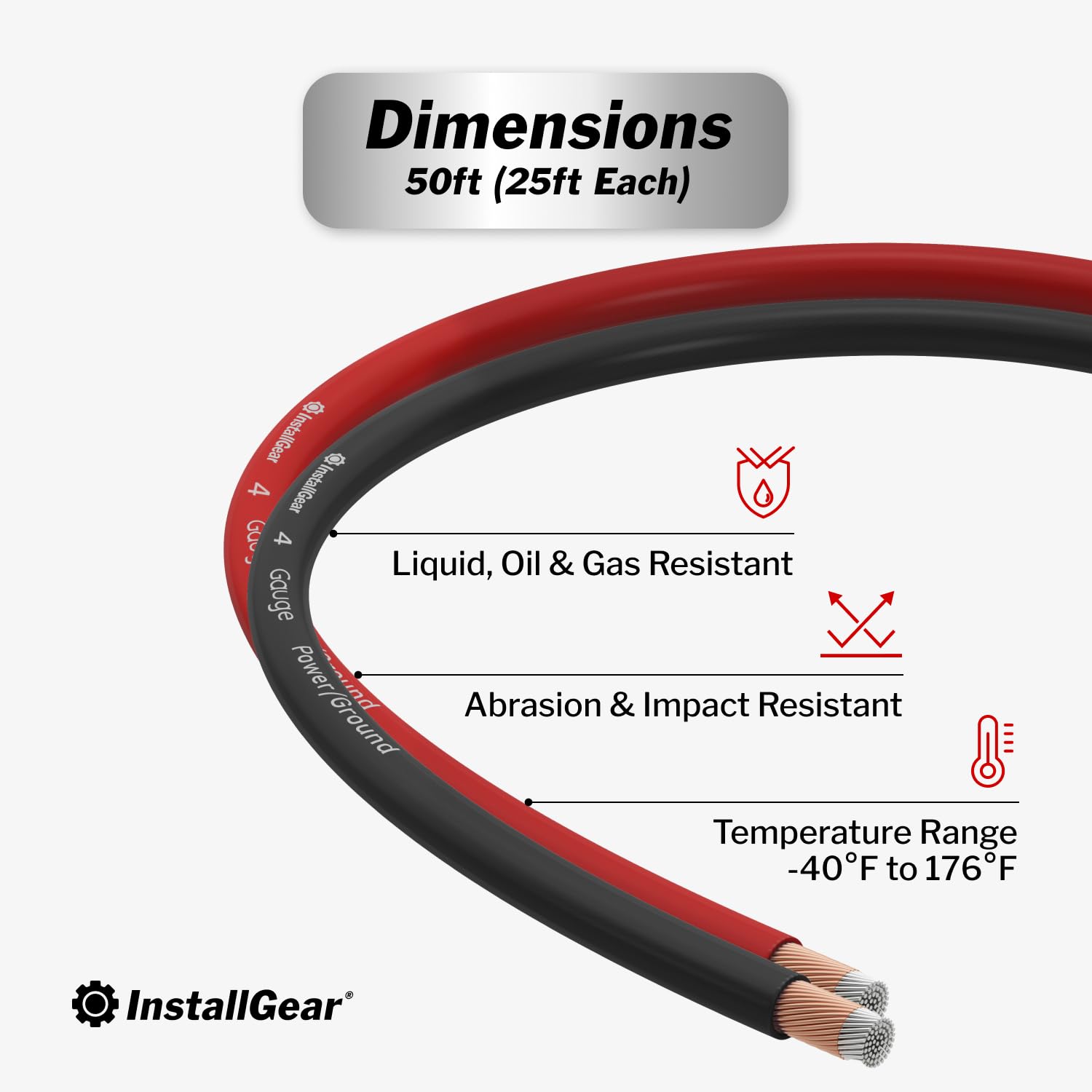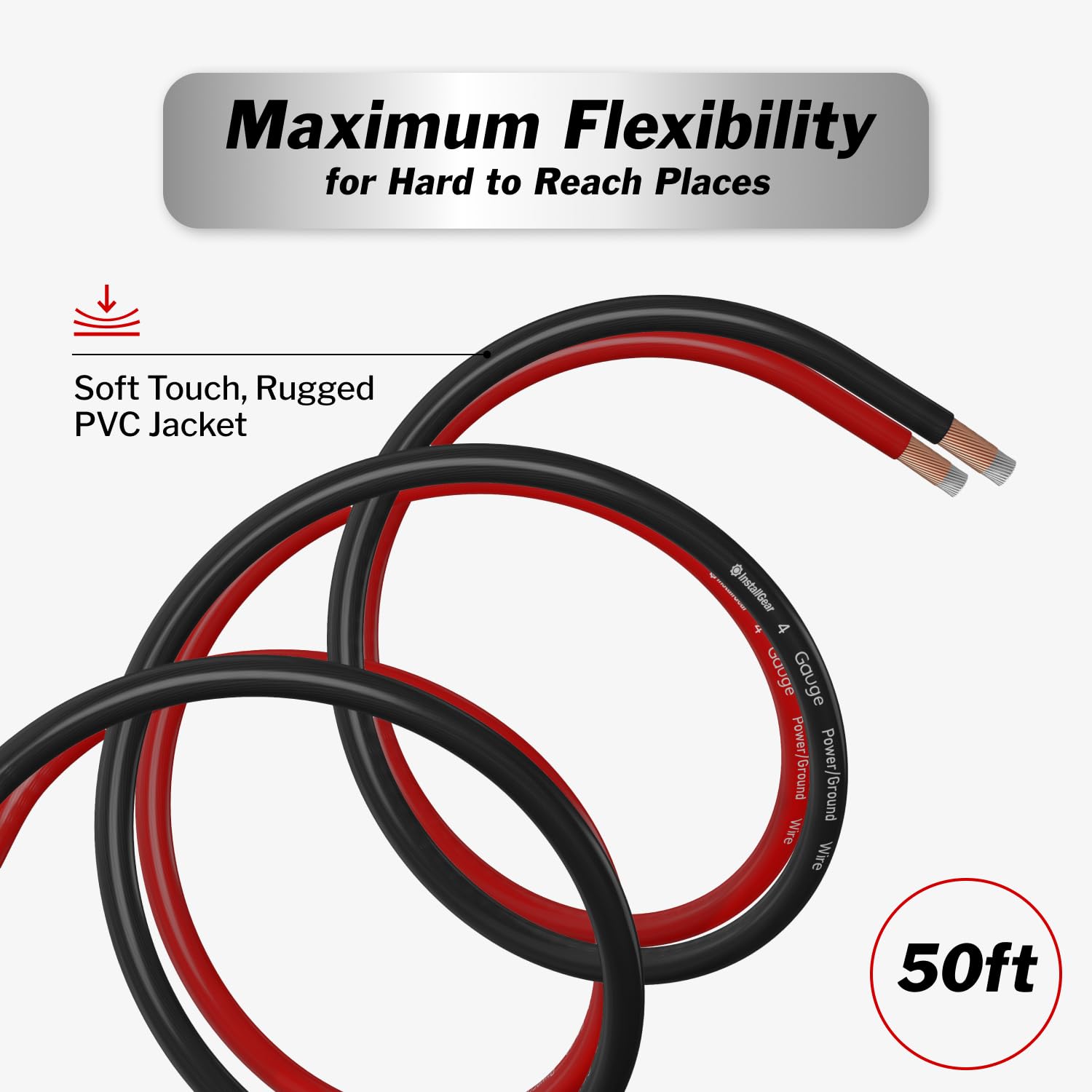 Durable 4 Gauge Wire Automotive: Superior-quality stranded 4 gauge 50ft CCA wire delivers efficient power transfer while being lightweight and flexible for 4 gauge wire automotive applications