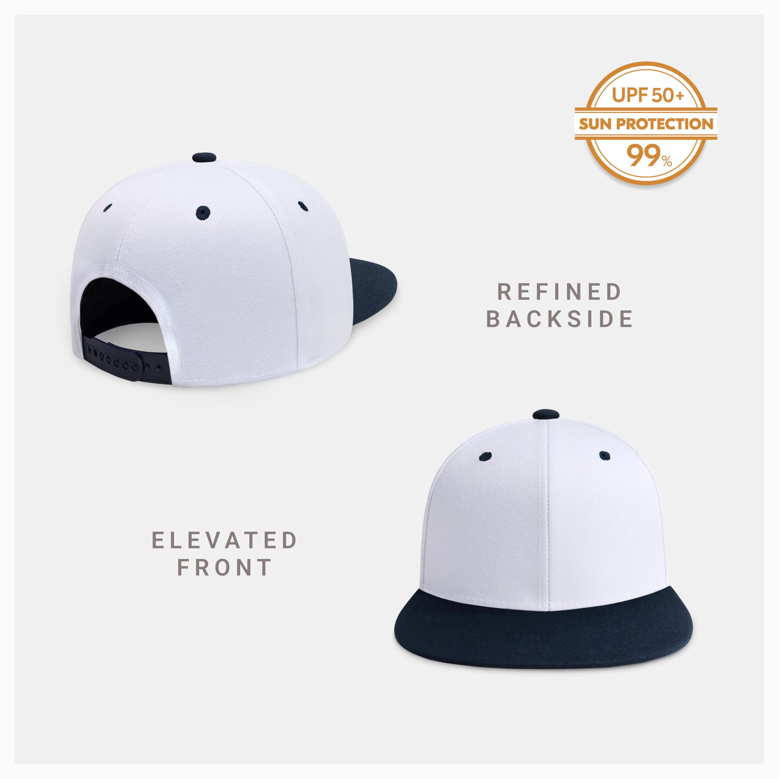 [WE GOT YOU COVERED] - Our all around soft snapback hats will help you from outdoor sun rays and UV lights. The snapback hat is assured to cover around 99.9% UPF 50+ sun protection, which provides excellent full coverage for the face, neck, and other sensitive areas.