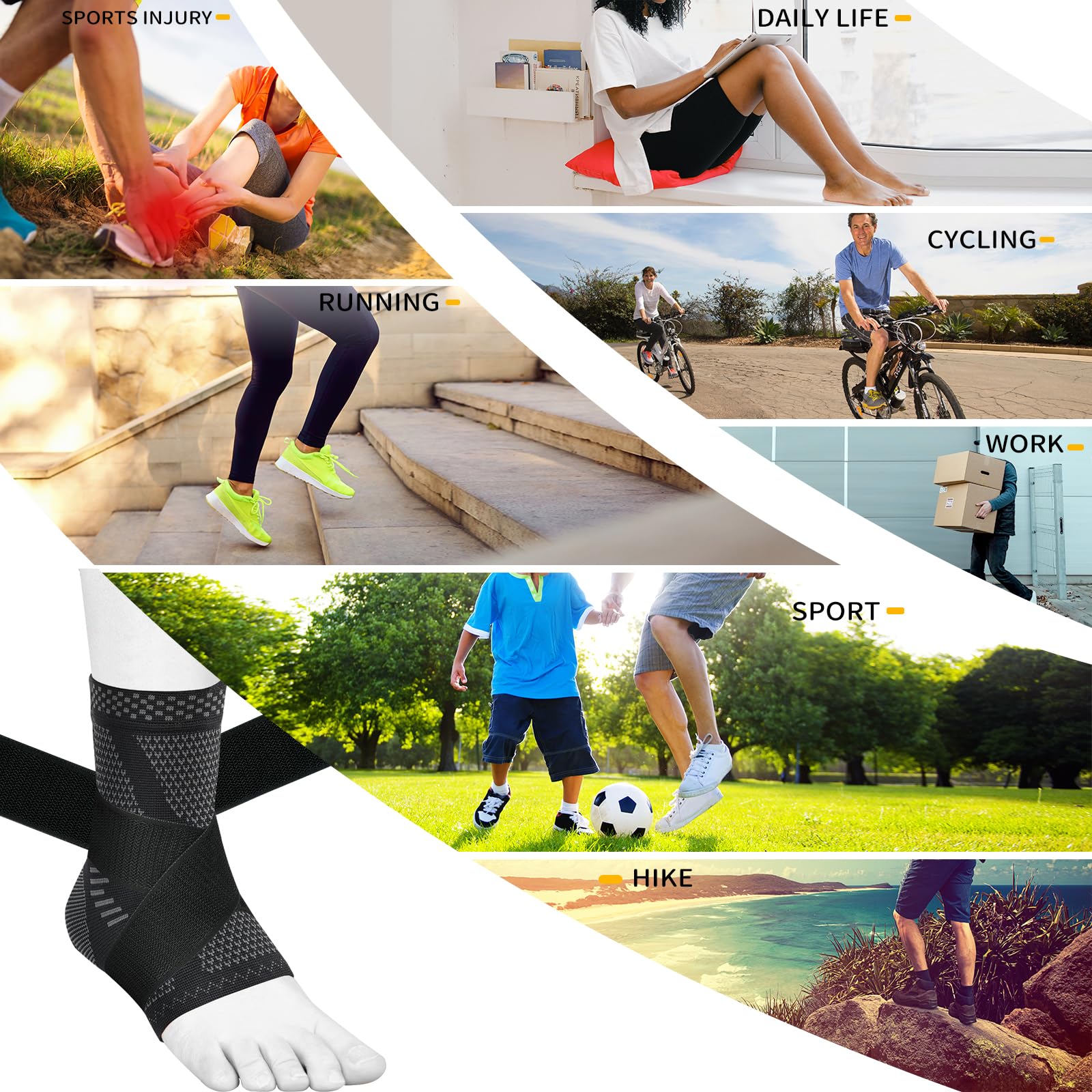Versatile use: The ankle brace for sprained ankle can be worn during a wide range of activities, such as walking, running, hiking, cycling, basketball, tennis, and other sports. It provides the necessary support and protection to help you perform at your best.