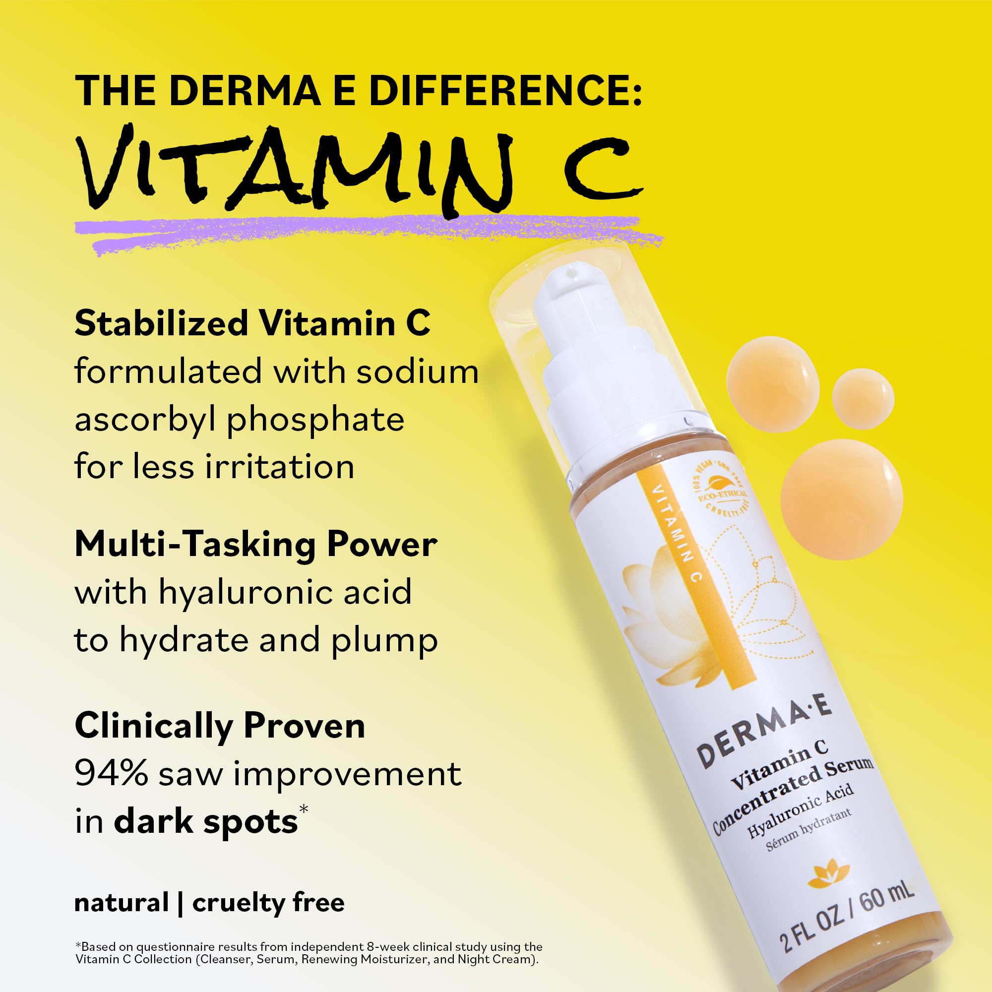 VITAMIN C SERUM: Derma E Vitamin C hyaluronic acid serum for face is a brightening serum that supports collagen health and improves the appearance of skin. This dermatologist-recommended dark spot serum helps diminish the appearance of fine lines, wrinkles, and uneven skin tone
