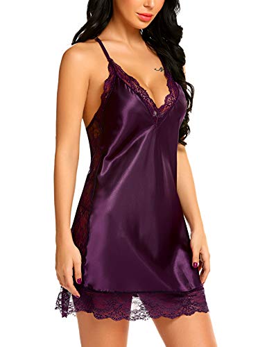 <br>Brand: Avidlove <br>Material: 100% Polyester <br>Color: White, Wine Red, Black, Blue <br>Collar: V-Neck <br>Design: Lace Patchwork <br>Style: Women's Lingerie Satin Lace Chemise Babydoll Nightgown Sexy Full Slips Sleepwear V Neck Nightwear Mini Teddy Night Dress <br>This satin lace lingerie features deep v neck, lace patchwork at neckline, side and hemline, adjustable shoulder straps, and special floral lace halter neck <br>Occasion: Sleepwear, Nightwear, or Loungwear. Perfect for Bride Wedding, Valentine's Day, Date Nights, Wedding Nights, Honeymoon Nights, Bedroom, Lingerie Party, and Special Nights <br> <br>Garment Care: Washing Max Temperature 40°C <br>Package Content: 1 x Women Lingerie Sleepwear with G-String <br> <br>Size Measurement <br>S (US 4-6): Under Bust--32.3" Waist--33.1" Center Back Length--22.8" <br>M (US 8-10): Under Bust--34.3" Waist--35.0" Center Back Length--23.2" <br>L (US 12-14): Under Bust--36.2" Waist--37.0" Center Back Length--23.6" <br>XL (US 16-18): Under Bust--38.2" Waist--39.0" Center Back Length--24.0" <br>XXL (US 20-22): Under Bust--40.2" Waist--40.9" Center Back Length--24.0"