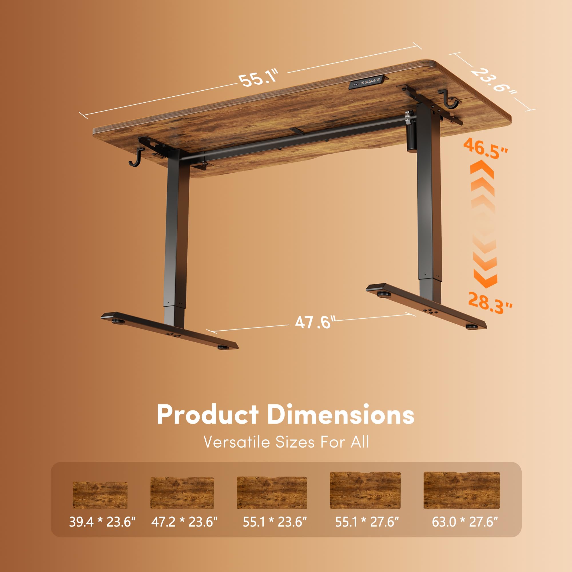 Outstanding Stability: Built with a reinforced steel frame, this 55.1" x 23.6" standing desk supports up to 176 lbs, providing a sturdy and wobble-free workspace at any height