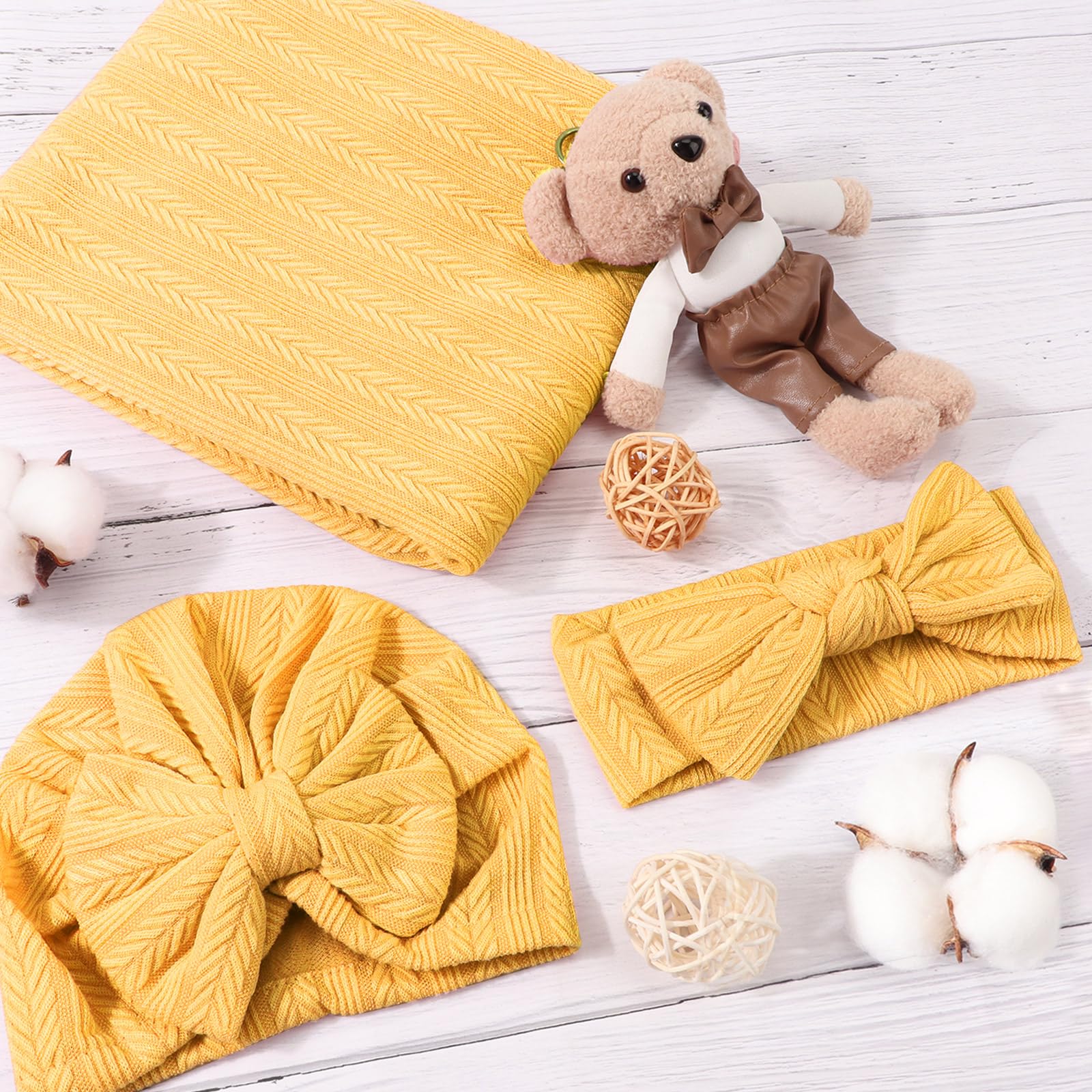 💝【Soft Fabric】- This baby blanket and headband hat set are made of super soft, stretchy and comfortable fabric. Warm and comfortable for baby's delicate skin. They contain no any harmful chemicals and are gentle on even the most sensitive skin.