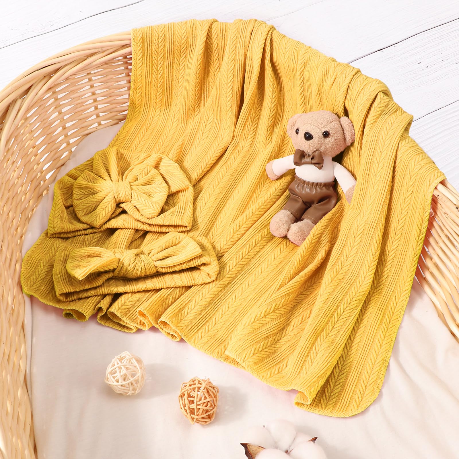 💝【Practical and Fashionable Design】- This comfortable newborn swaddle set is designed with a textured knit to make it more comfortable for your baby to wear without slipping. Wheat ear design is the trend this year! Our baby blanket has no zippers, no Velcro or snaps to protect your baby from any potential risks, no danger to your small angel.