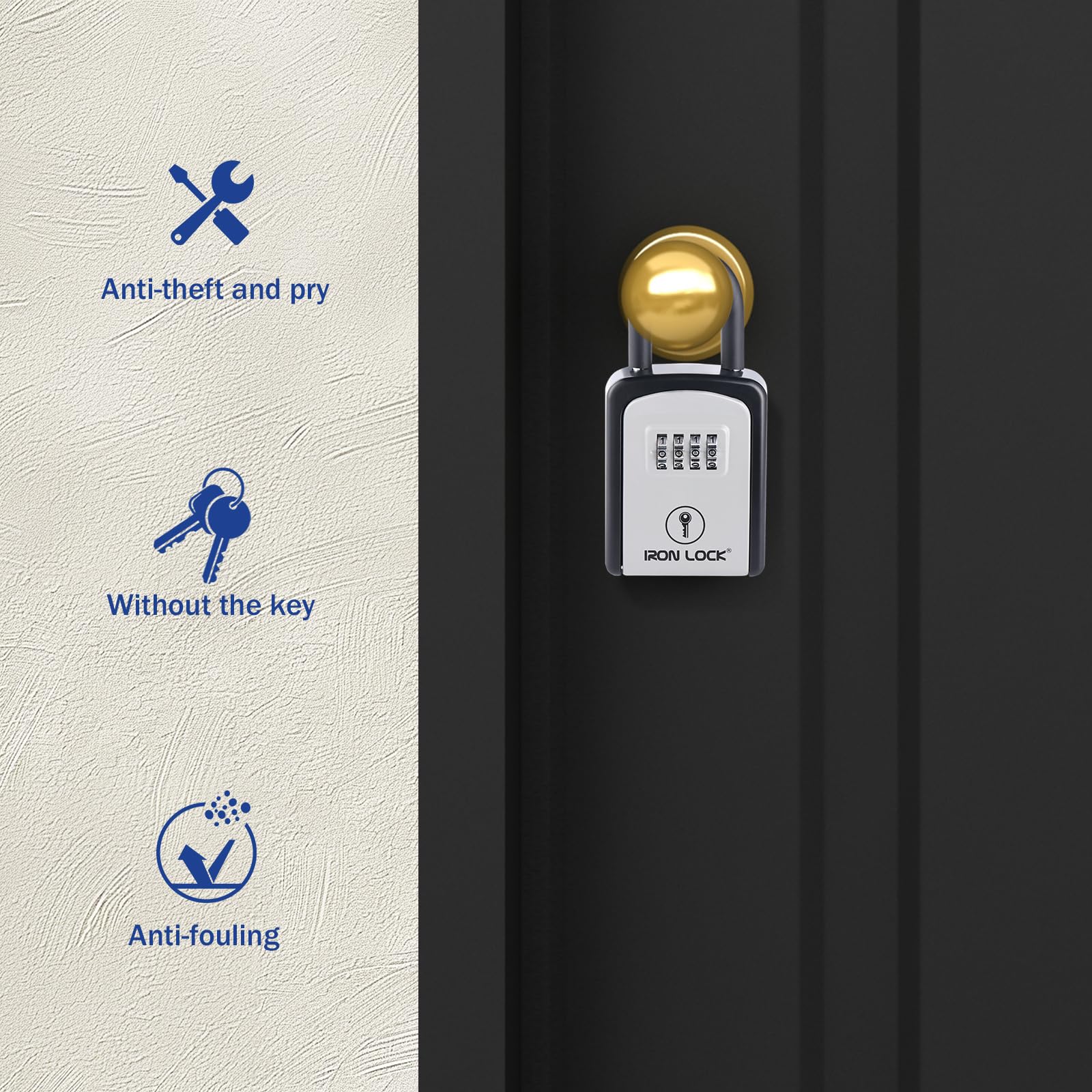 🔑Removable Shackle is easy to install over a doorknob, fence, locker, gate, garage or anywhere you need to install a lock box, and it can be placed anywhere. Easily transportable from one location to another. A Removable Shackle makes it easy to place on doorknobs, a wide fence or anything that is oversized. Cover should be up to keep it the combination from getting jammed or stuck.