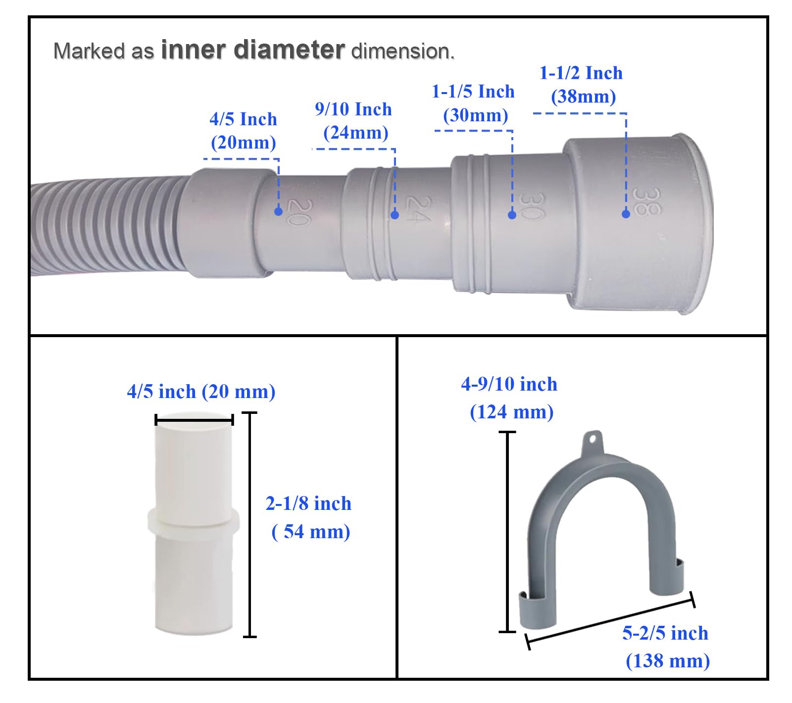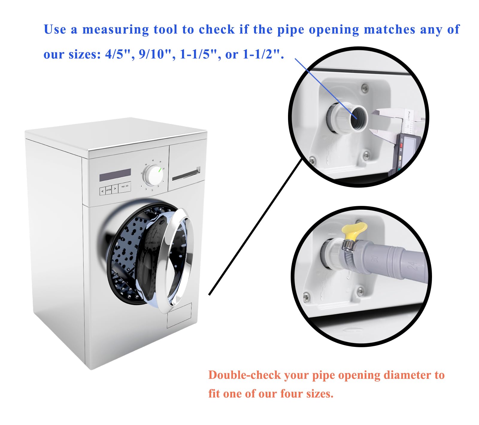 【Universal Fit】 Compatible with most front-load/top-load washers, dishwashers & dehumidifiers (LG/Samsung/Whirlpool, etc.). Four inner diameters of 4/5, 9/10, 1-1/4, and 1-1/2 inches can be cut according to actual size,Confirm your original hose size before purchase.