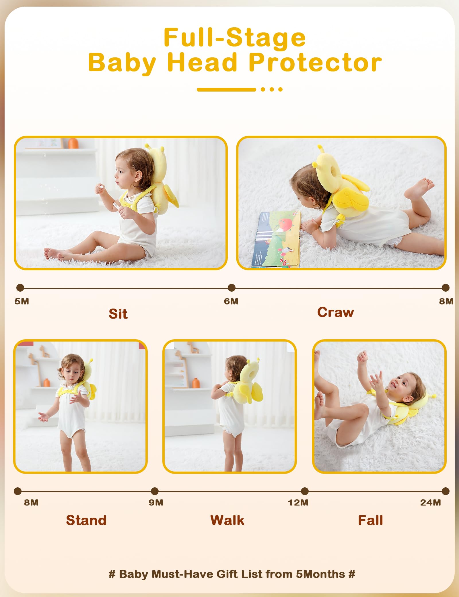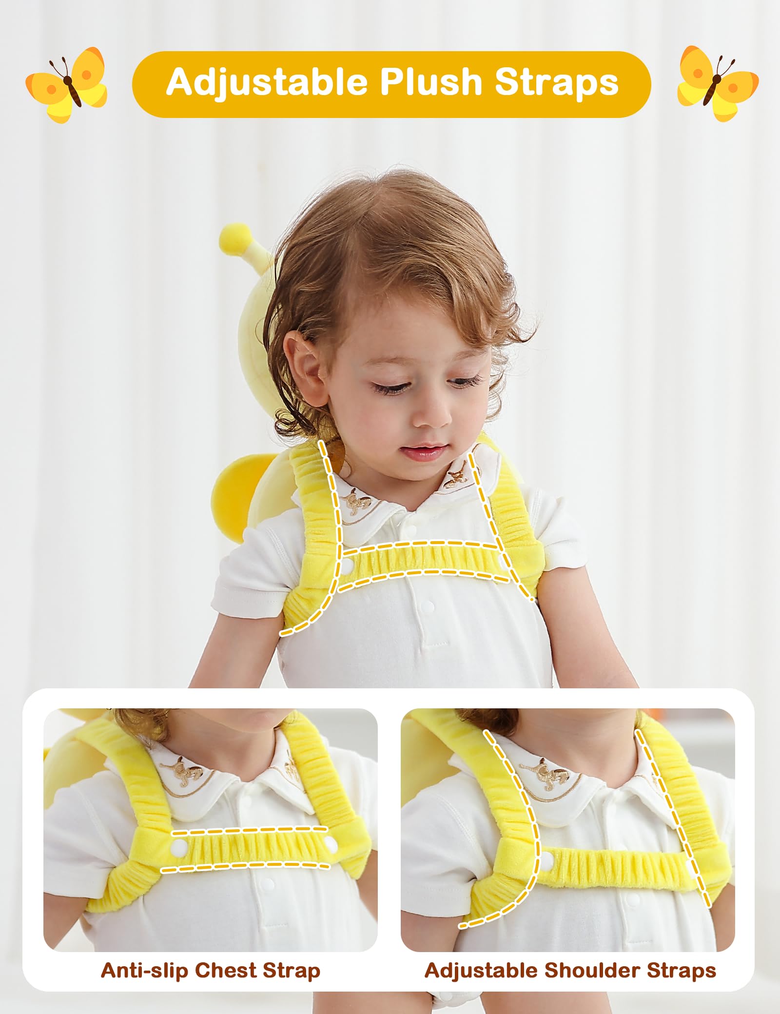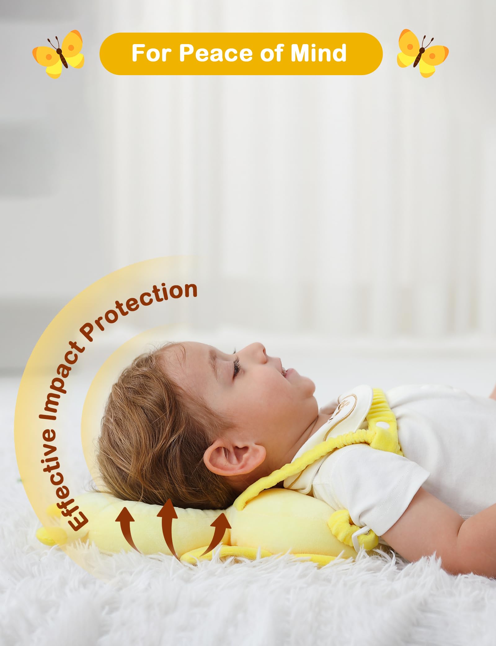 Soft&Breathable&Lightweight Head Protector: Super-soft plush fabric with high-elastic PP cotton padding, gentle on baby’s delicate skin