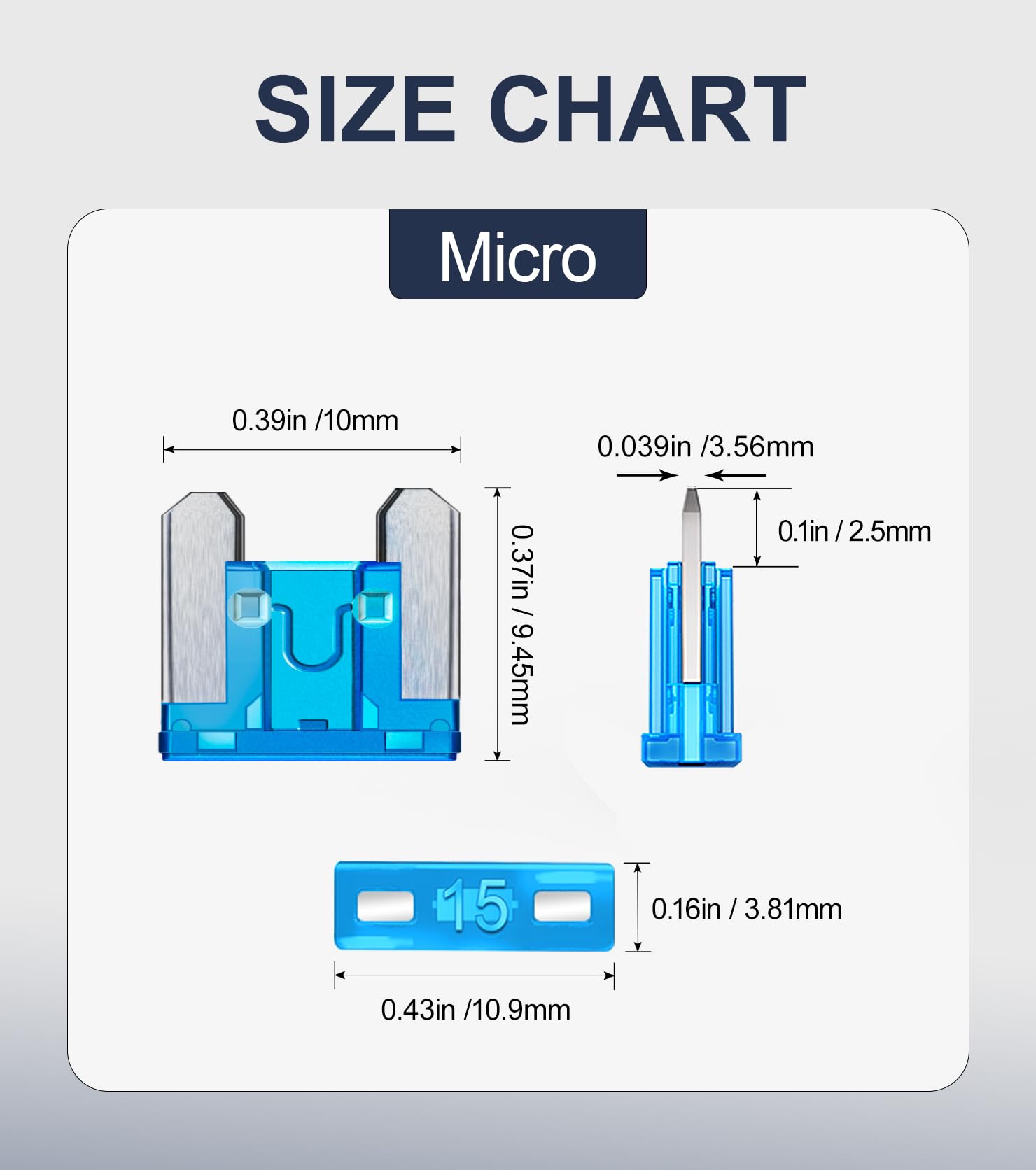 【High cost-effective fuse kit】-- The kit includes 30pcs micro size fuses (Low Profile Mini Fuse). The car fuses have 11 current specifications (2A /3A / 5A/ 7.5A/ 10A/ 15A/ 20A/ 25A/ 30A/ 35A/40A).