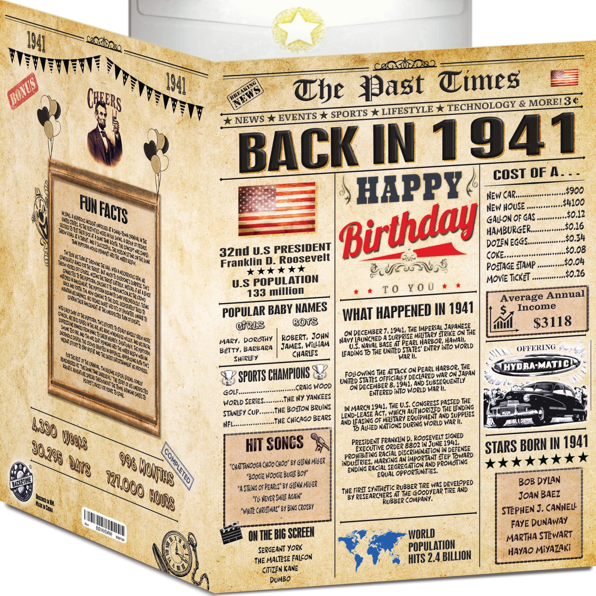 π FUNNY BIRTHDAY CARD + EXCLUSIVE ENVELOPE π Enjoy a beautifully printed Back in 1941 card that's entertaining to read, featuring a special bonus on the back with intriguing stories or lesser-known facts from that year. The interior offers space for personalized messages, designed with an aged appearance and elegant decorations to enhance the vintage feel. The included envelope boasts a unique design ideal for mom and adult born in 1941. Birthday Cards for Women, Birthday Cards for Men.