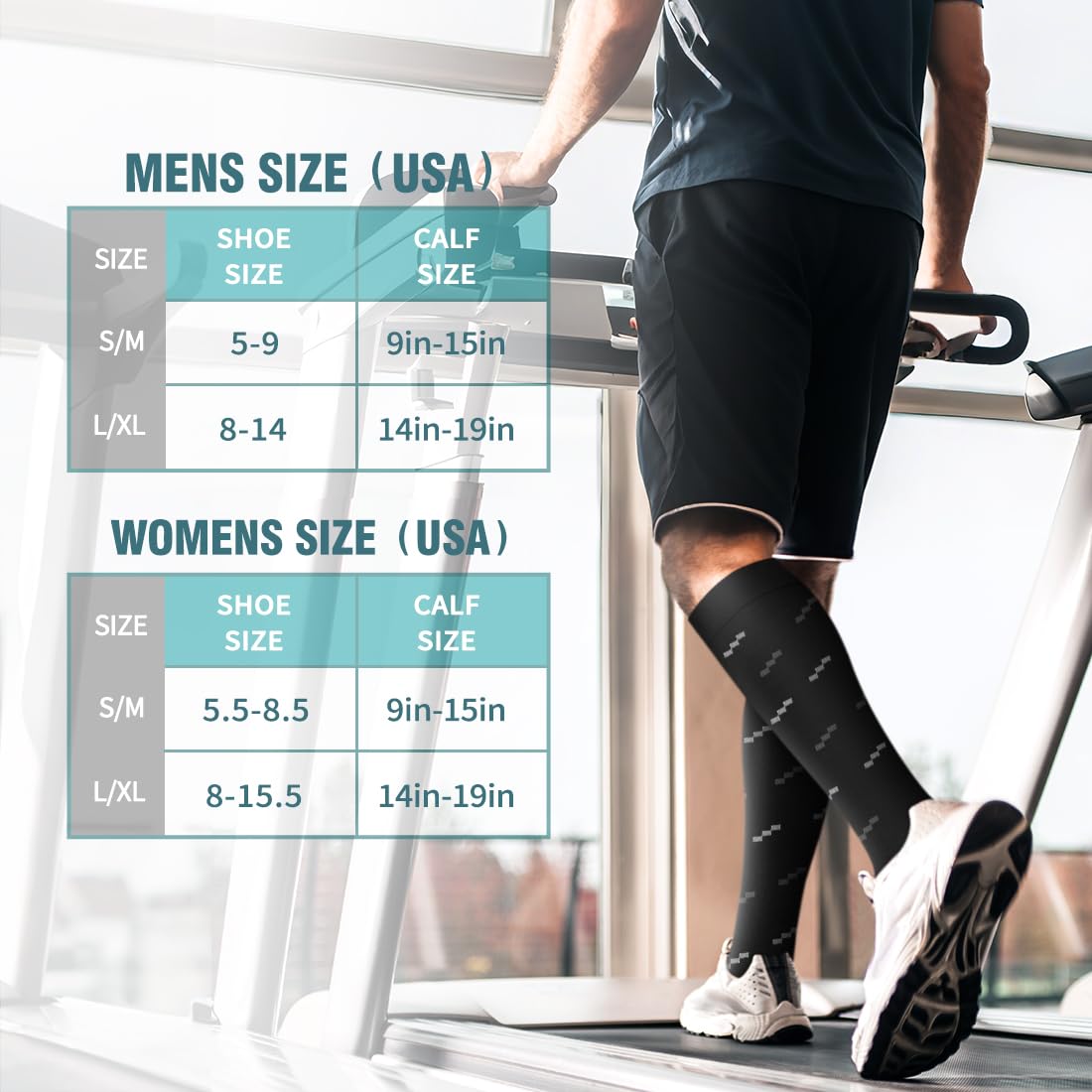 UPGRADE YOUR COMPRESSION SOCKS DRAWER! - With all the tasks of work and family (and of life itself!) we may forget to pay attention to and maintain the health of our legs. Our compression socks are designed to help increase circulation, improve leg and foot comfort, and reduce soreness and swelling, increase energy, All day comfort.Great for long periods of sitting or standing, endurance sports, flying and travel, post-workout recovery, pregnancy, and spider & varicose veins.