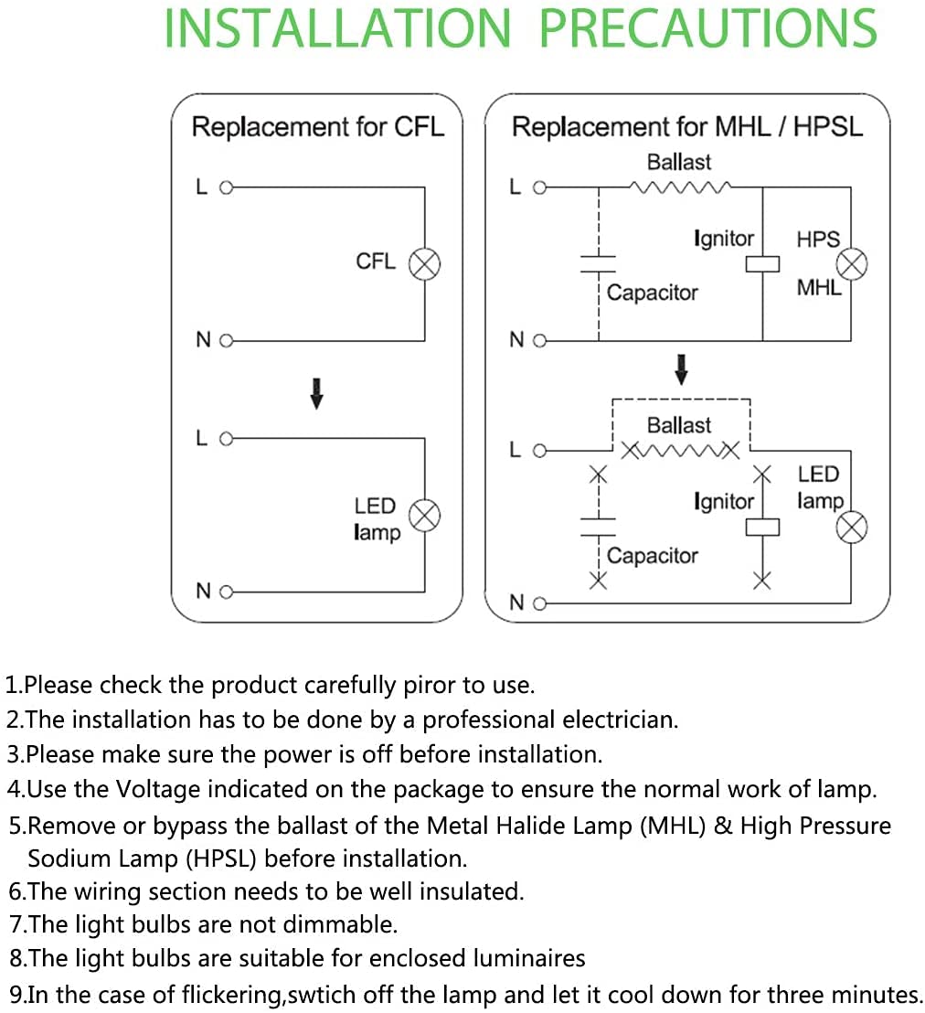 ✅Bypass the ballast: Corn lights have a built-in smart driver power supply and do not require a ballast.Please remove the ballast before power on.