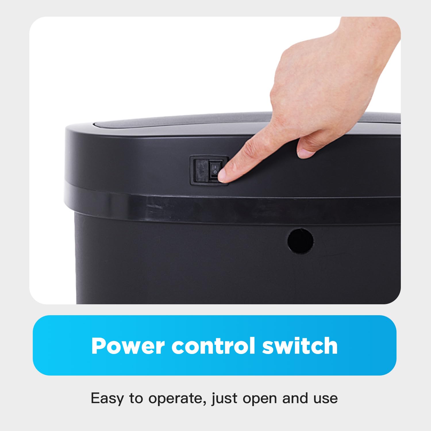 POWER SAVING - Equipped with a motion sensor, the trash can operates efficiently with just 4 AA batteries, allowing for long-term usage without frequent replacements. It's designed to save energy, making it convenient for everyday use.