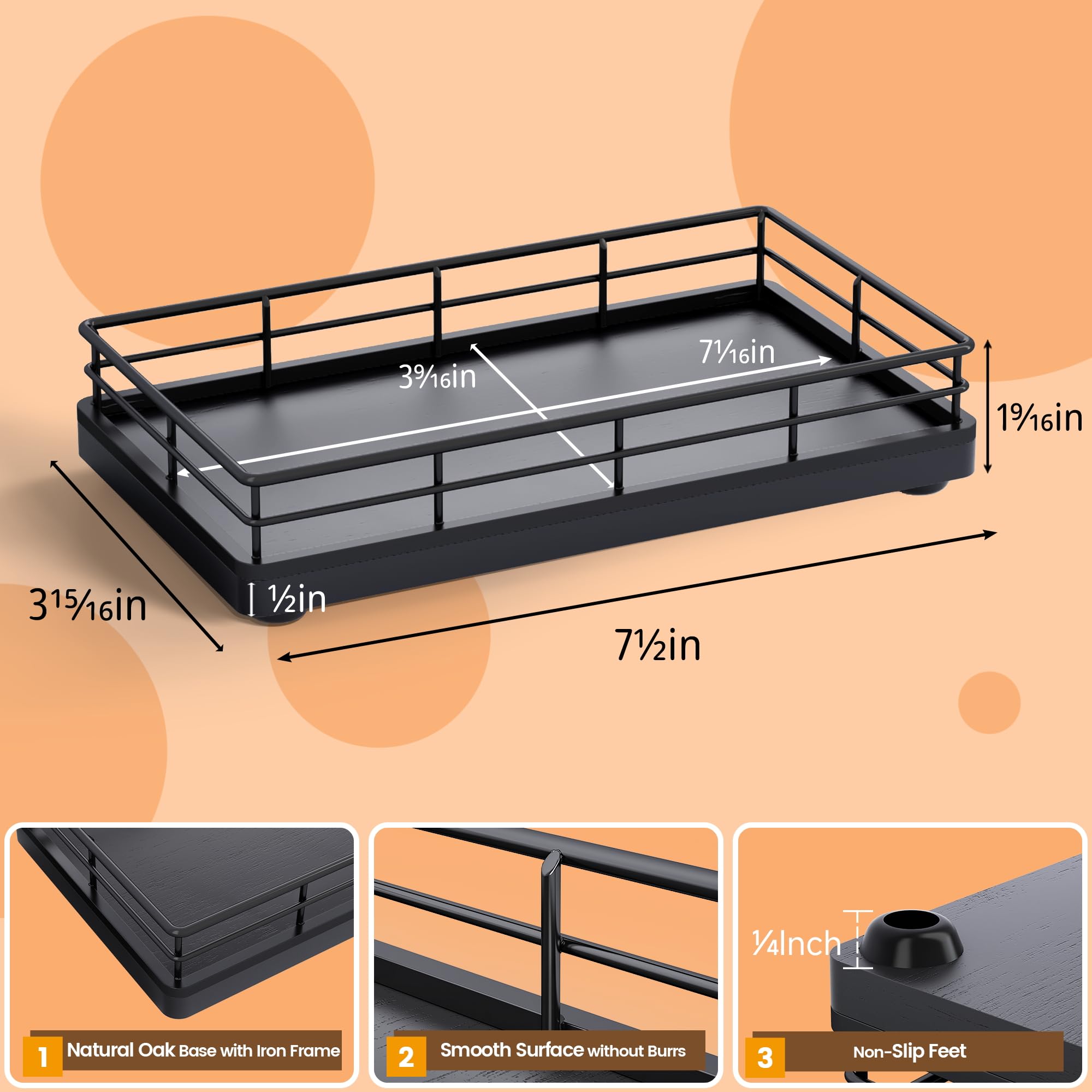 Versatile Functionality: Elevate your daily routine with our tray for bathroom counter; Neatly arrange bathroom essentials like mouthwash with cups, toothbrushes, cotton swab, keeping your countertop tidy; Add a touch of elegance to your dresser by using the vanity tray to showcase perfumes, jewelry, and candles; The small tray can also be used to store keys, watches and change at the entrance