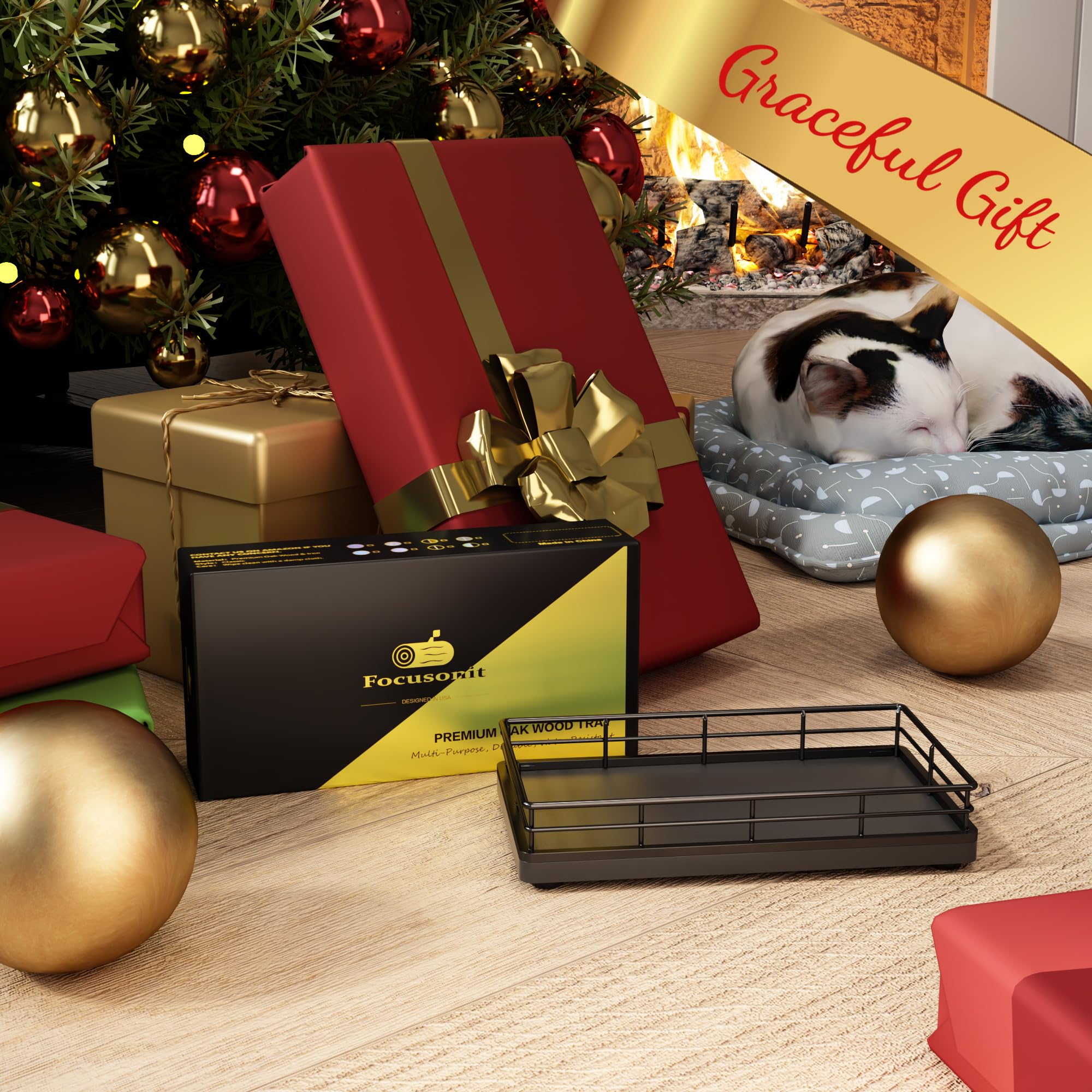 Unique Charm: Elevate your space with a unique appearance featuring a combination of iron mesh edges and solid oak base; Oak's distinctive and captivating grain pattern adds natural beauty, giving an exquisite touch of elegance and sophistication; This fusion blends modern minimalism with rustic charm seamlessly; This wood rectangle tray is crafted from high-quality oak, which ensures durability and increased load-bearing capacity