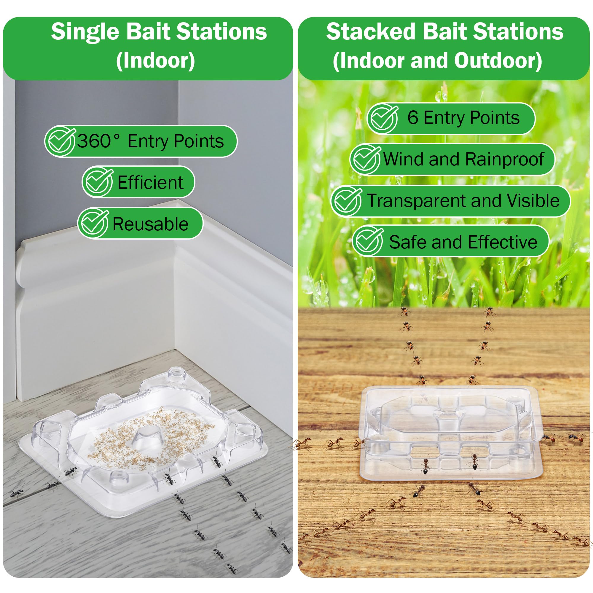 Efficient and Neat: Whether indoors or outdoors, just set up the ant bait traps, add liquid ant bait (not included), and then watch how it attracts ants, and you can easily eliminate the entire ant colony