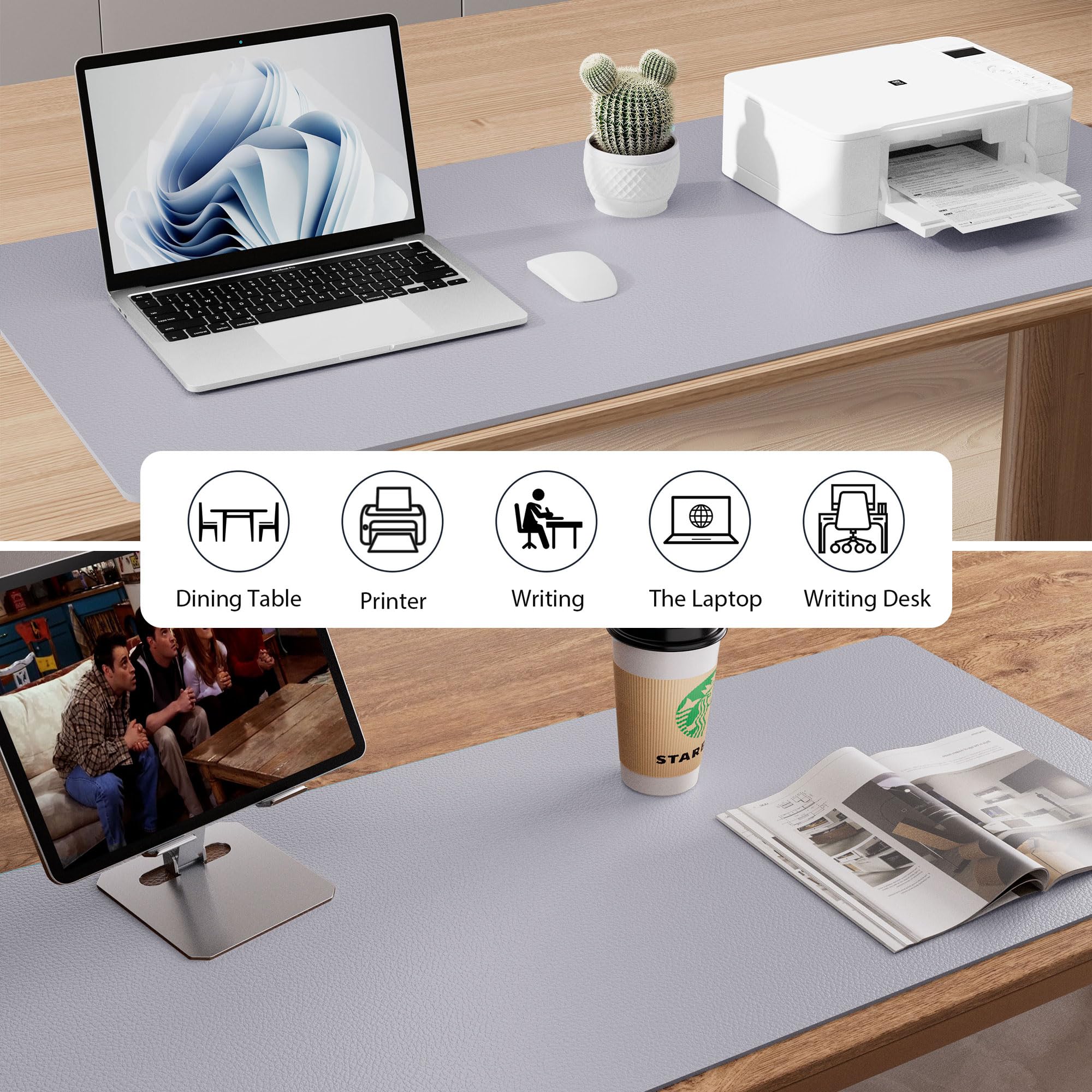 MULTIFUNCTIONAL DESK PAD: 36 x 17 Inch Size is large enough to accommodate your laptop, mouse and keyboard. Its comfortable and smooth surface can be work as a mouse pad, desk mat, desk blotters and writing pad