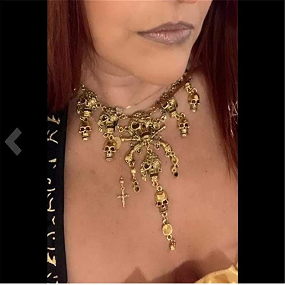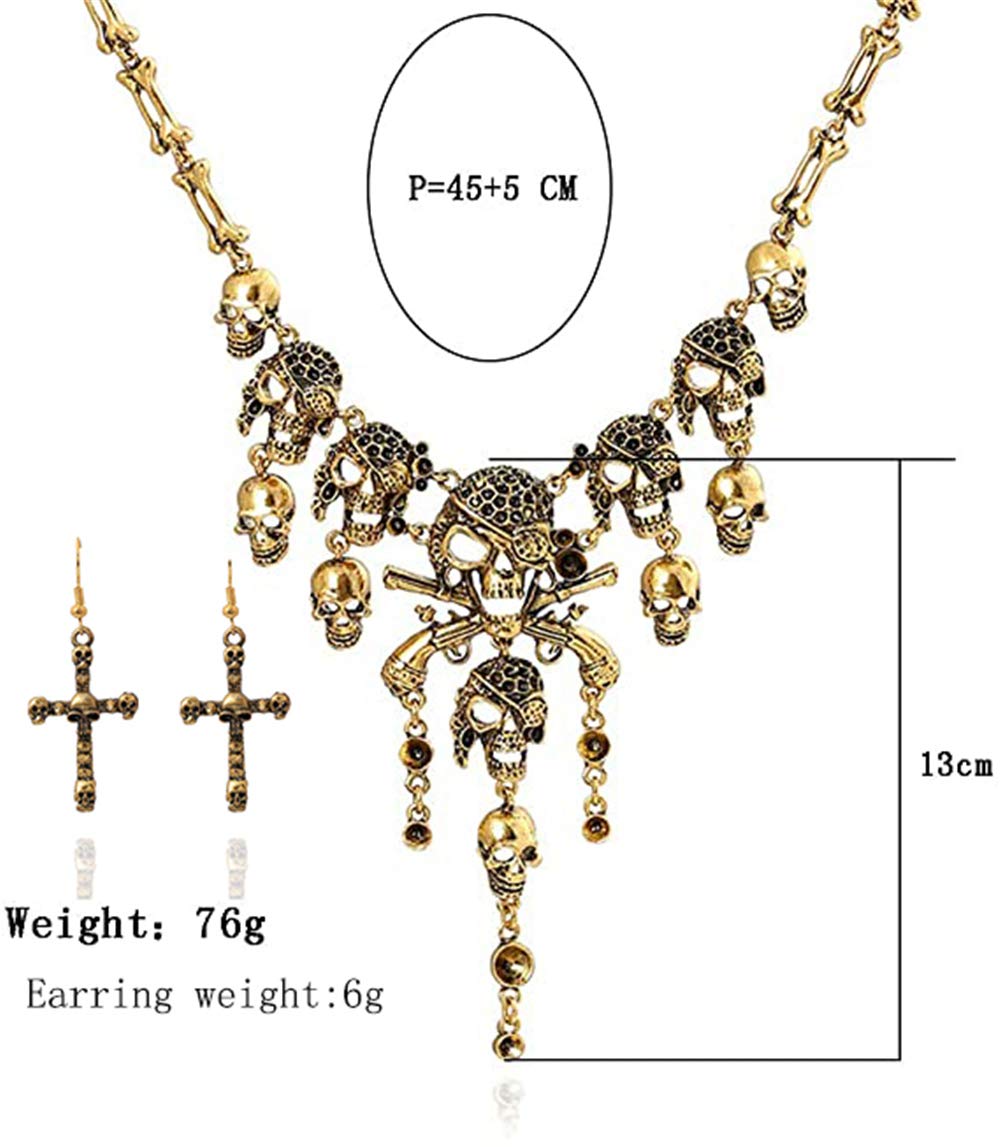 Color: The package will get 1 exquisite skull gold necklace and 1 pair of cross skull gold earrings