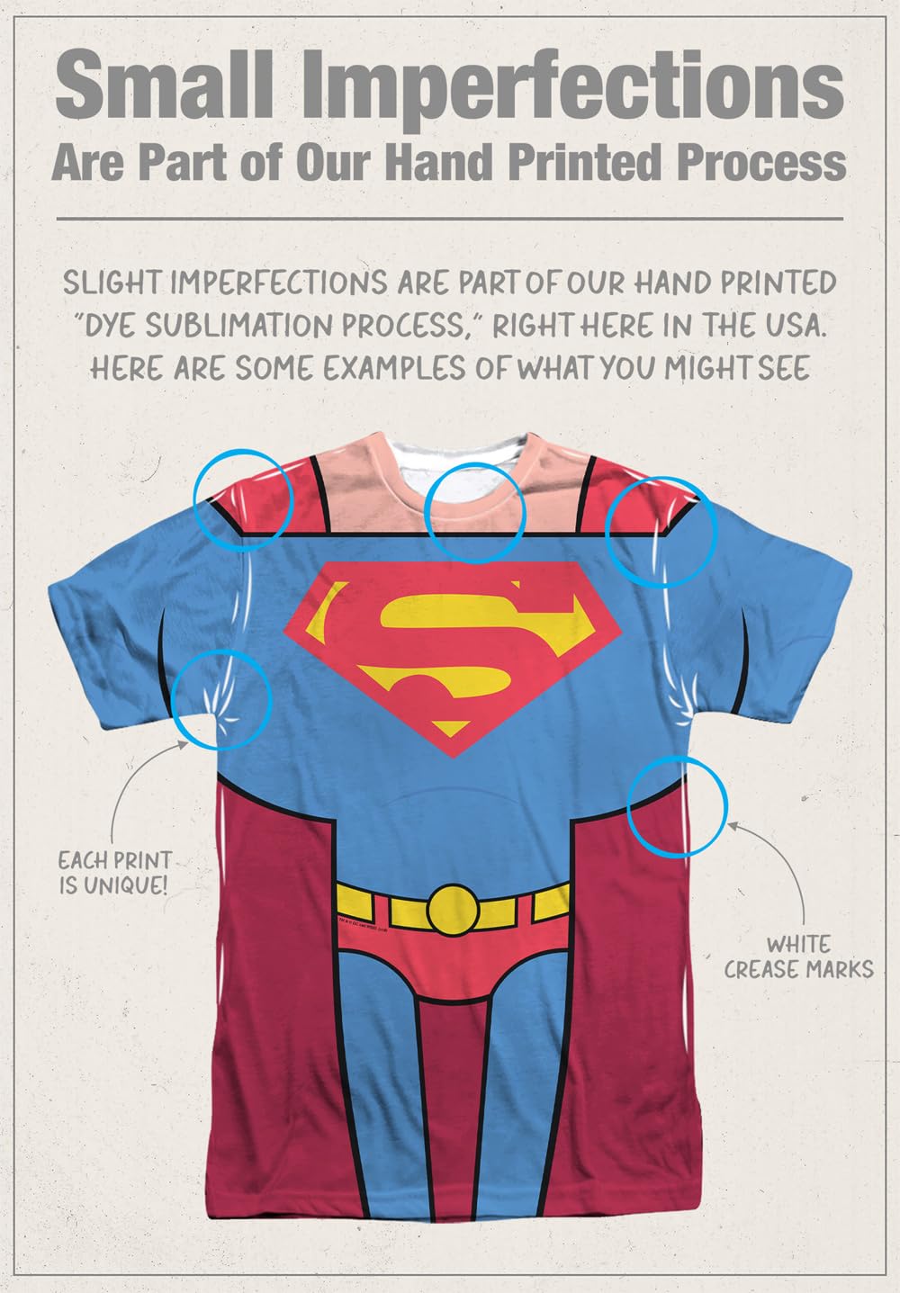 PRINTED IN USA - All our shirts are hand-printed in the USA using a dye sublimation process that creates slight imperfections over seams and/or folds that are unique to and a part of each item.