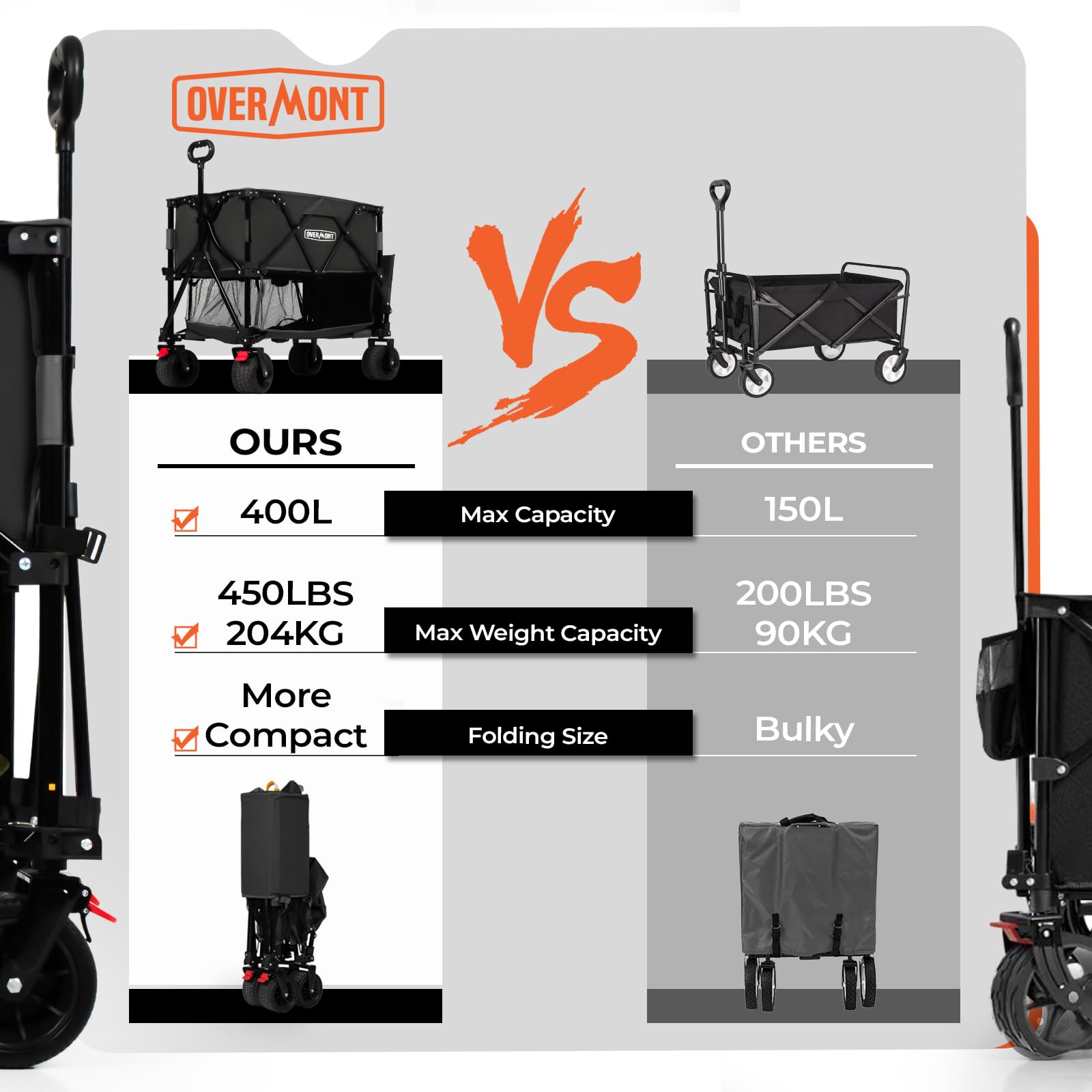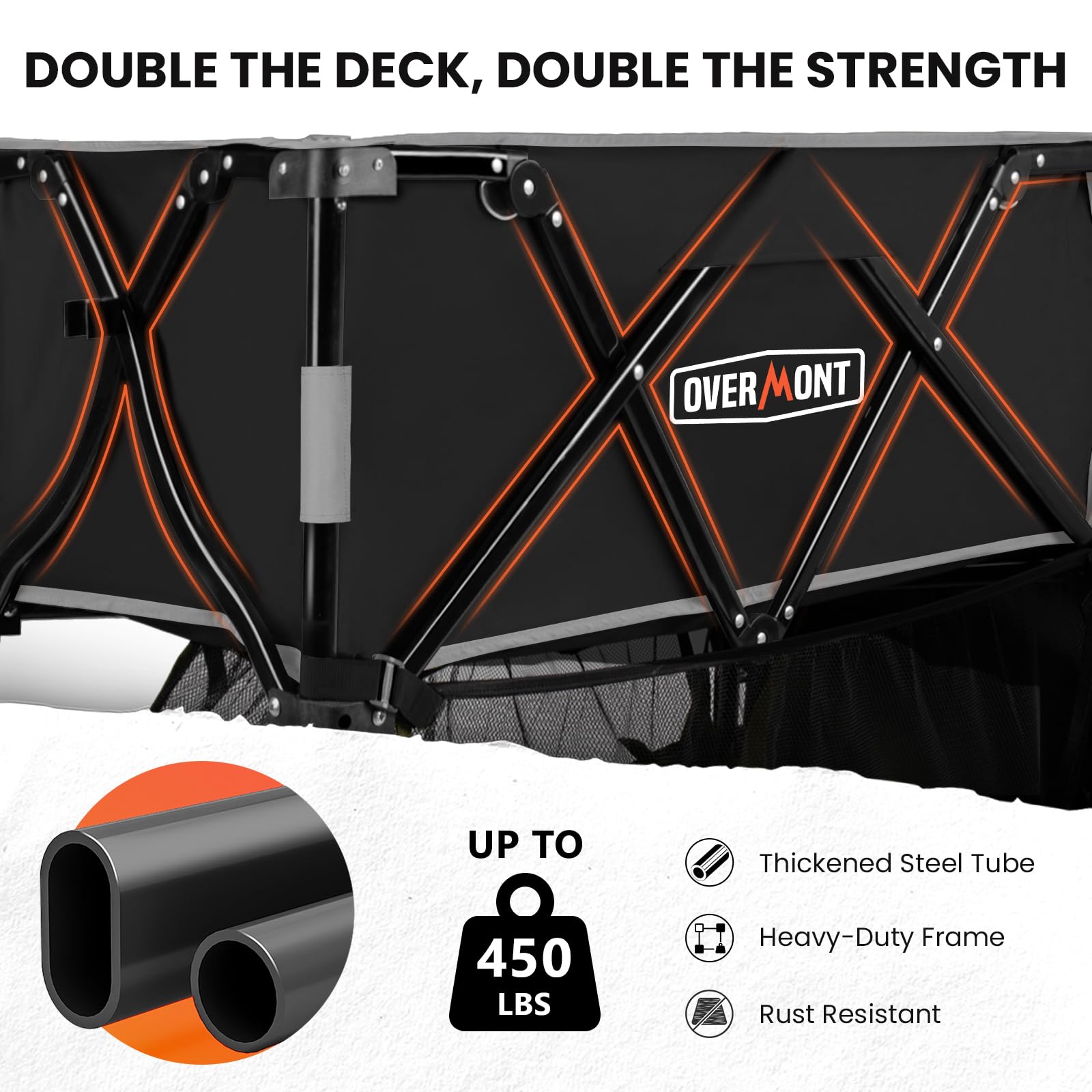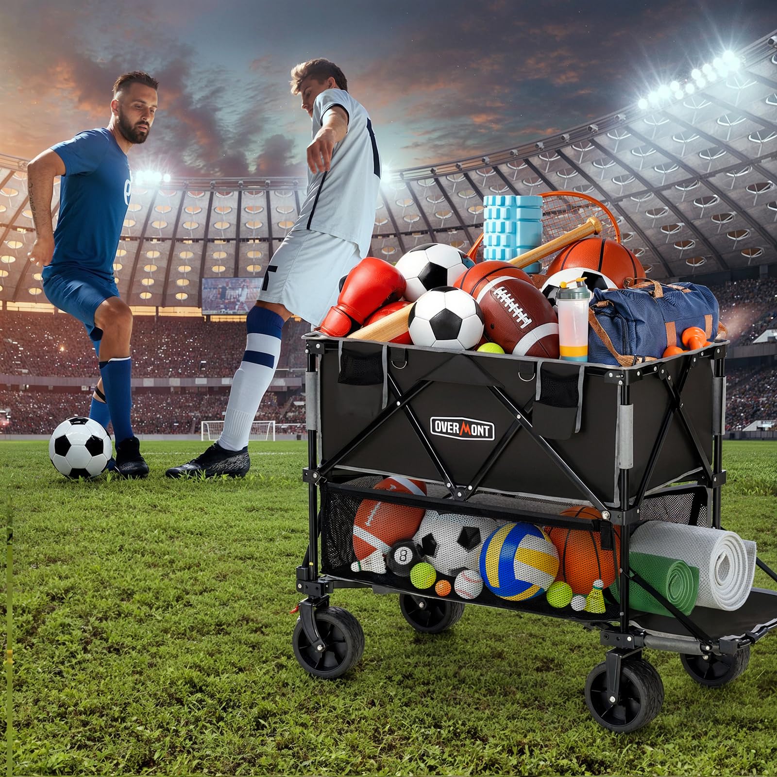 𝐄𝐱𝐭𝐫𝐚 𝐋𝐞𝐧𝐠𝐭𝐡, 𝐄𝐱𝐭𝐫𝐚 𝐂𝐨𝐧𝐯𝐞𝐧𝐢𝐞𝐧𝐜𝐞: OVERMONT Double Decker Wagon comes with an extended lower shelf, measuring a generous 47.2 inches. It's tailor-made for those oversized items that won't fit into a regular wagon.
