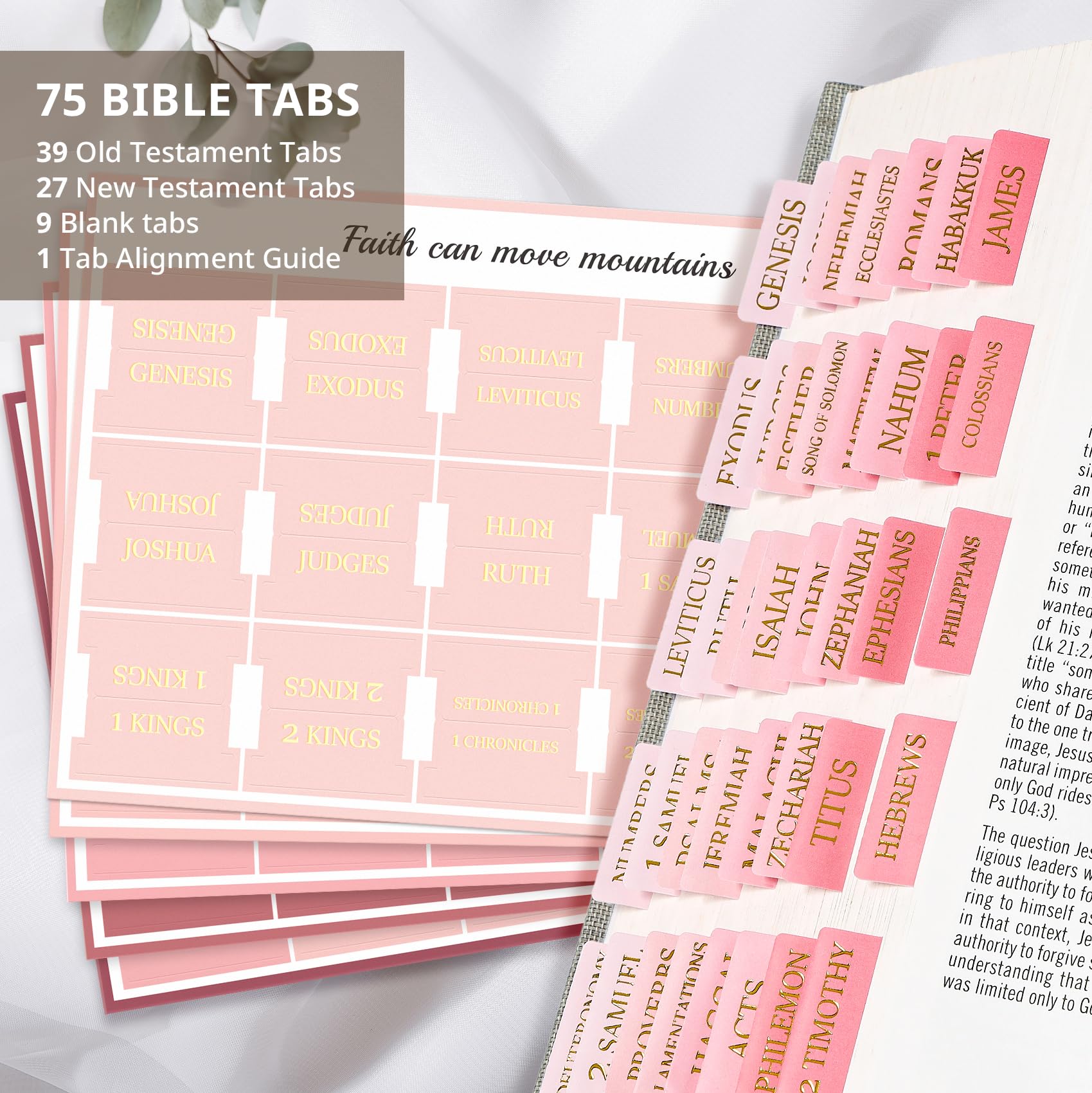Simplified Bible Navigation - Effortlessly organize your Bible with 39 tabs for the Old Testament, 27 for the New Testament, and 9 blanks for your categorization. Enhance your study by quickly finding any chapter you need, diving into the Bible with ease and purpose.