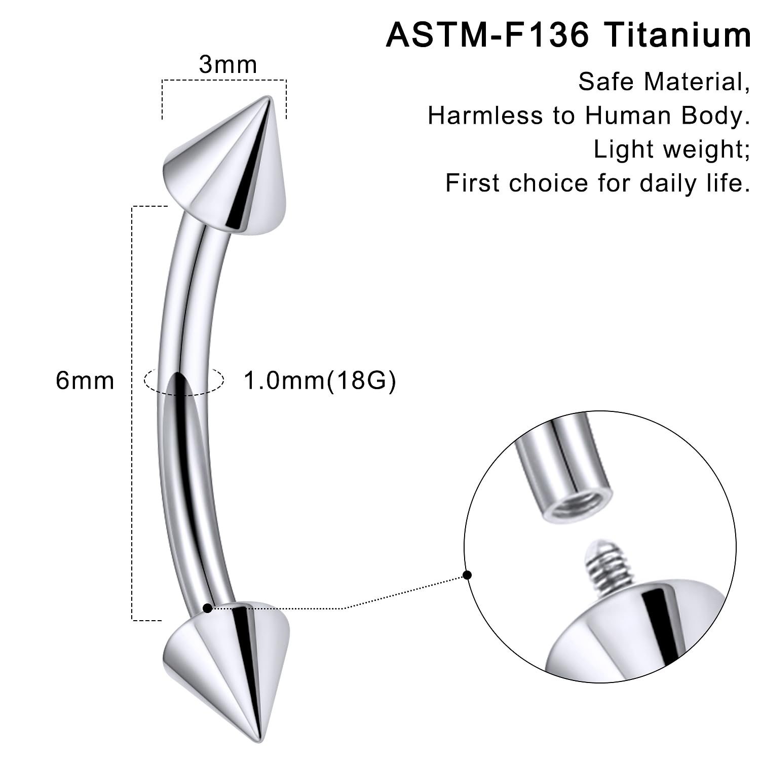 【Multiple Uses】: Titanium internal thread Curved Barbell Piercing Used as Eyebrow Piercing Jewelry, Anti Eyebrow Piercing Jewelry, Vertical Labret Lip Jewelry, Rook Earrings, Bridge Piercing Jewelry, Small Blley Button Ring, Navel Rings, Frog Eyes Piercing Jewelry, Snake Eyes Tongue Rings, Snake Eyes Piercing Jewelry, Vertical Hood Piercing Jewelry, Surface Tragus Piercing Jewelry, VCH Piercing Jewelry.