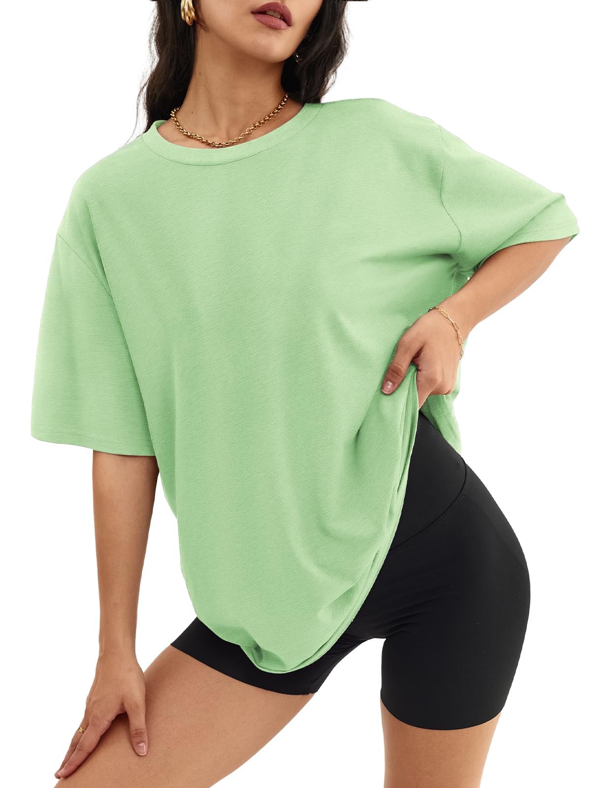 Design:Oversized workout shirts for women,short sleeve shirtrs,plus size,round neck,loose fit tops,basic tees,oversized casual blouse,solid color never out of style,easy to match with every style.