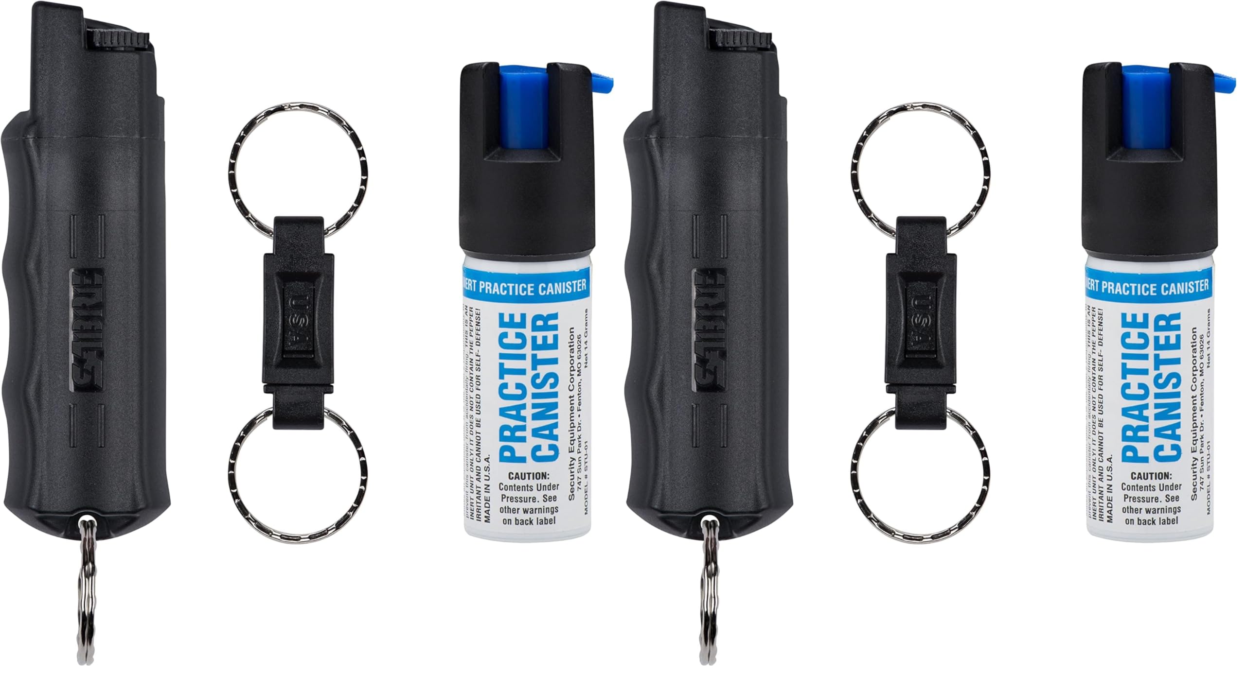 FASTER & EASIER TO HIT THE TARGET: Easiest to grasp finger grip enhances your aim and helps keep your eye on the threat; Includes Quick Release Keychain for immediate access to spray when seconds count; Easy To Attach - keys, bags, purses, lanyards for instant access; Secure and easy to use twist lock safety