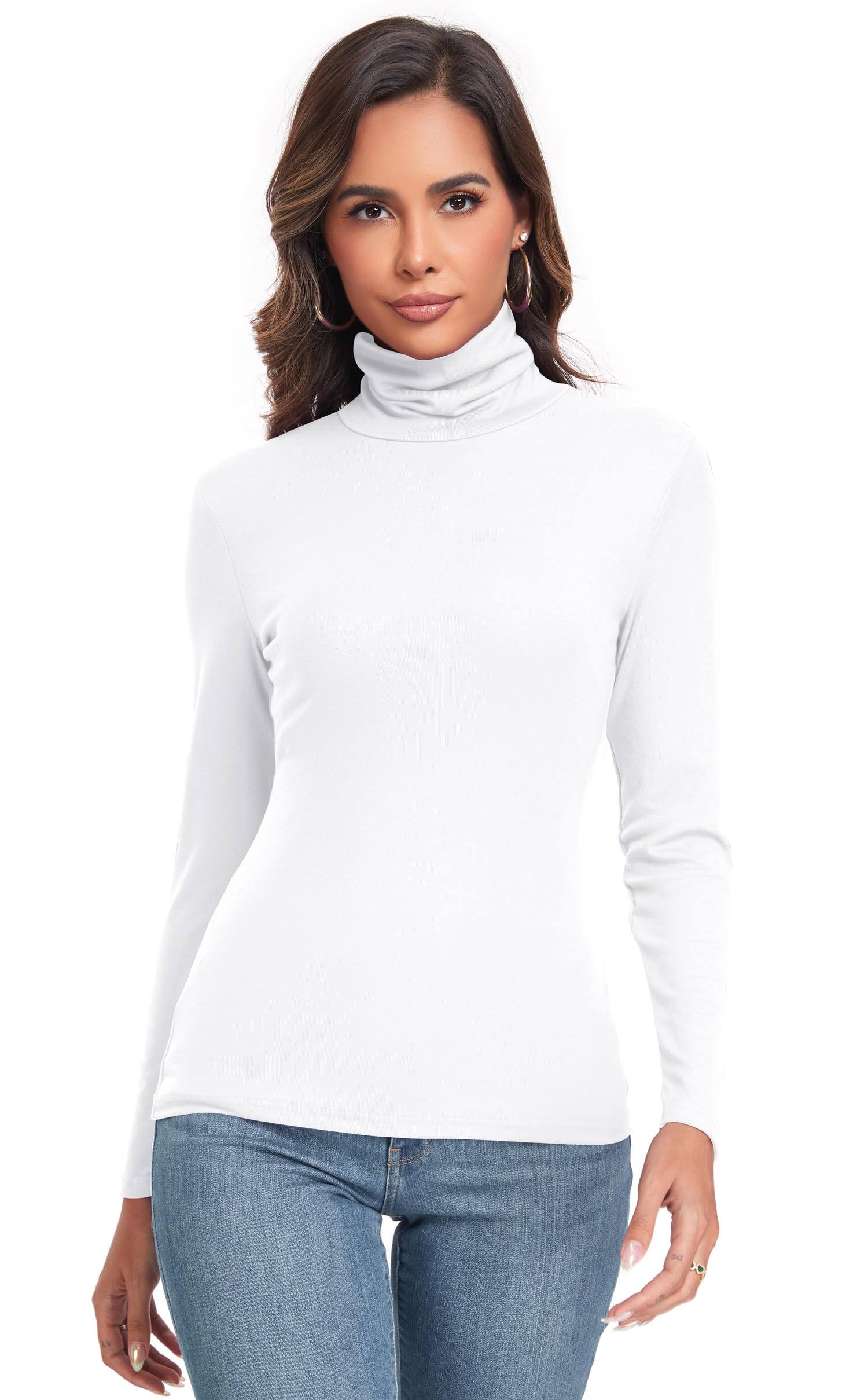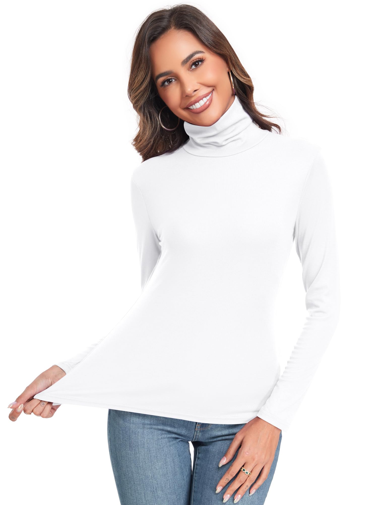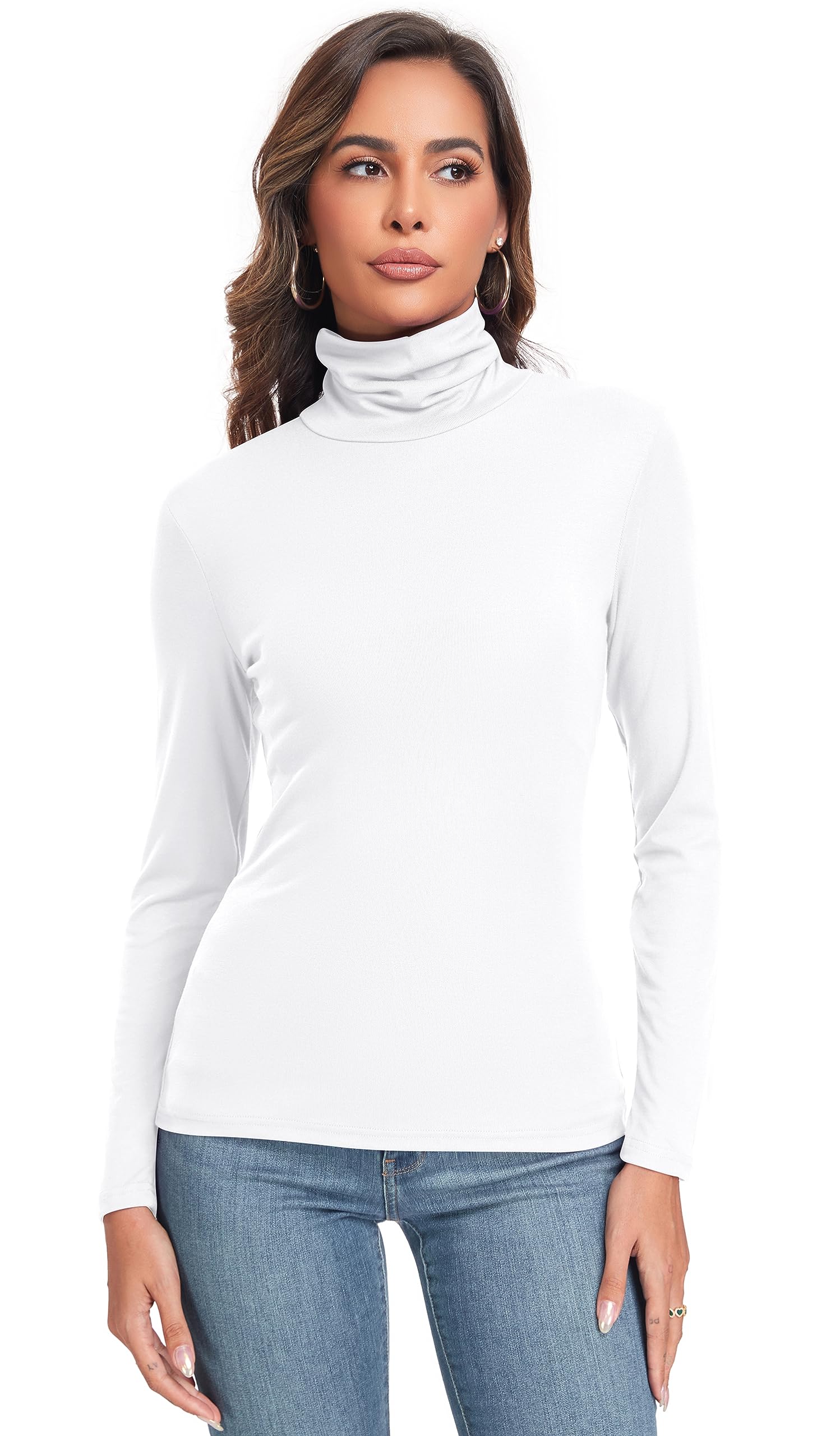 Description Womens Turtleneck Long Sleeve Shirts Thermal Underwear Tops Women Mock Neck Turtleneck Active Shirt Base Layer Long Sleeve Underwear Tops make yourself comfortable and stylish. Stretchy, lightweight but not see through. Slim fit but so soft and comfort. Our long sleeve turtleneck top can be easily paired with shorts, jeans, trousers, skirts, high heels, or boots. You'll look sexy, fashionable, and elegant in any occasion. Women's High Neck Long Sleeve Turtleneck T-Shirt great for cold weather, this turtleneck makes from stretchy and breathable fabric and snug fits to your neck. A necessity for every woman's wardrobe! Machine wash, Not fade, Us Standard Size. Please refer to the size chart before purchasing. Size Chart Small --- Bust 33.0" --- Sleeve 22.8" --- Length 24.4" Medium --- Bust 35.4" --- Sleeve 23.2" --- Length 24.8" Large --- Bust 37.8" --- Sleeve 23.6" --- Length 25.2" X-Large --- Bust 40.2" --- Sleeve 24.0" --- Length 25.6" XX-Large --- Bust 42.6" --- Sleeve 24.4" --- Length 26.0" Note: 1. Please allow 0.4-0.8 inch differ due to manual measurement. 2. Due to the light and different computer monitor, the color may be slightly different as pictures.