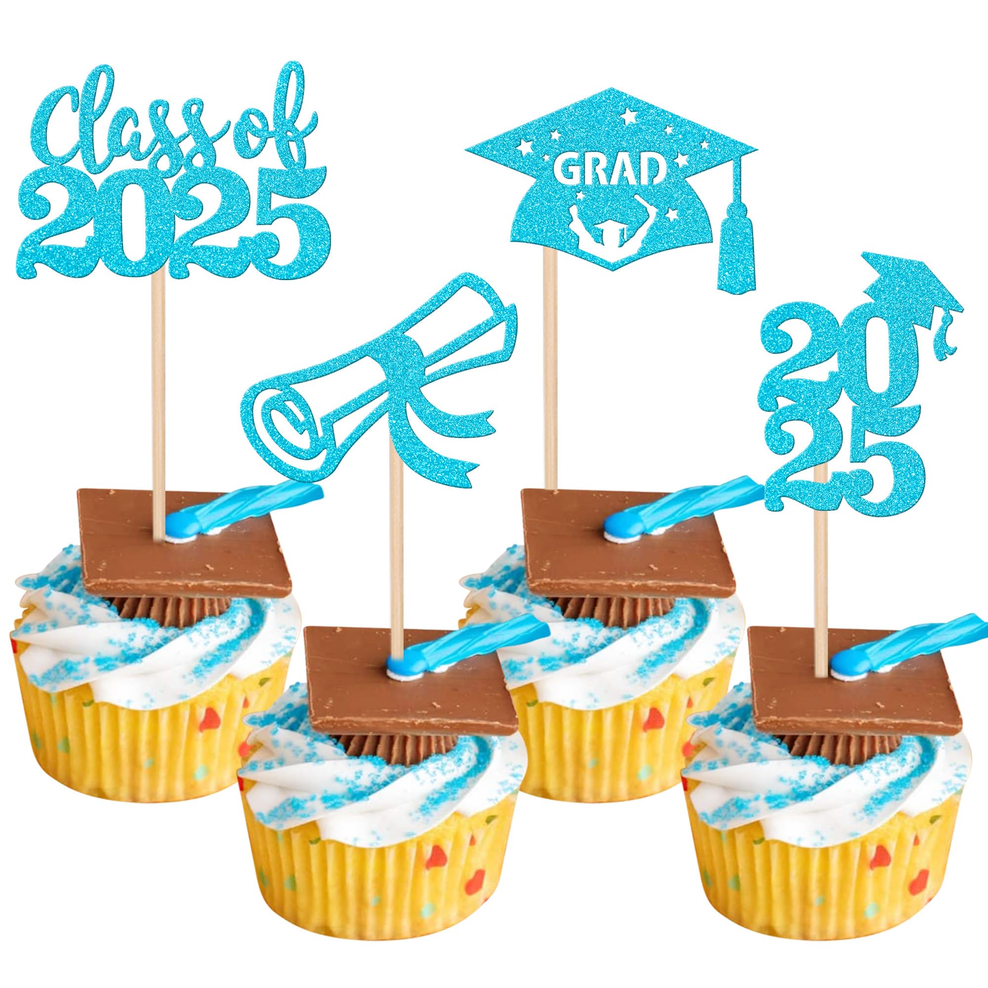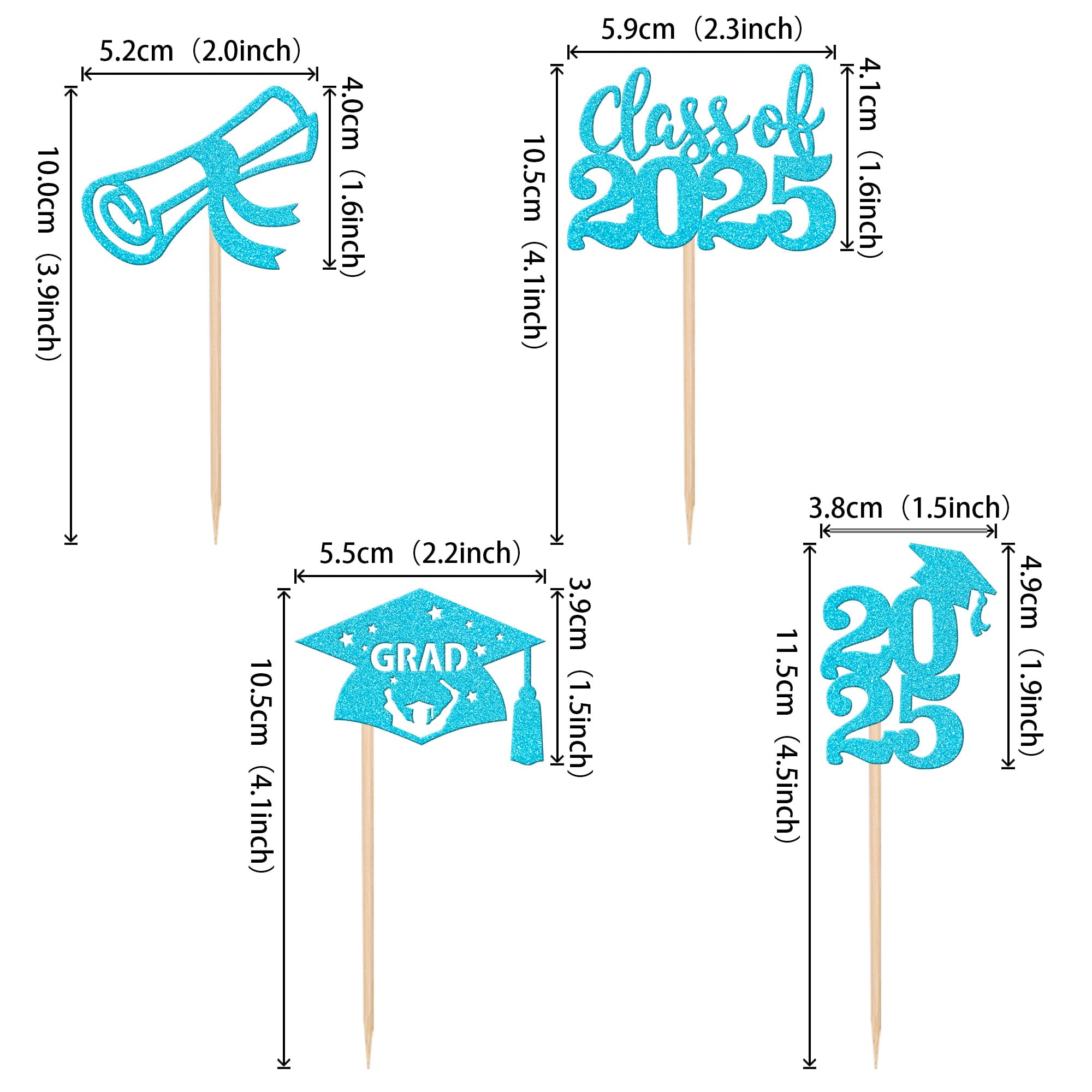 Graduation Cap Cupcake Toppers Glitter Diploma Grad Cap Class of 2025 Cupcake Picks Graduation Decorations for 2025 Graduation Theme Party Cake Decorations Supplies Perfect for 2025 graduation theme party cupcake decorations, such as kindergarten, primary, junior, senior high school, college, Master or Ph.D. graduation. Pack of 24 pcs, 6 pcs of each design. The size is 2*3.9/ 2.3*4.1/ 2.2*4.1/ 1.5*4.5 inch ( with stick ) Made of high quality paper card stock,thick and thick and sturdy. These cupcake toppers are single glitter, the back is white, and they are intended for decoration only, please do not put them in oven or microwave. If the item you received has any defects, please contact us immediately. we will deal with it within 24 hours.