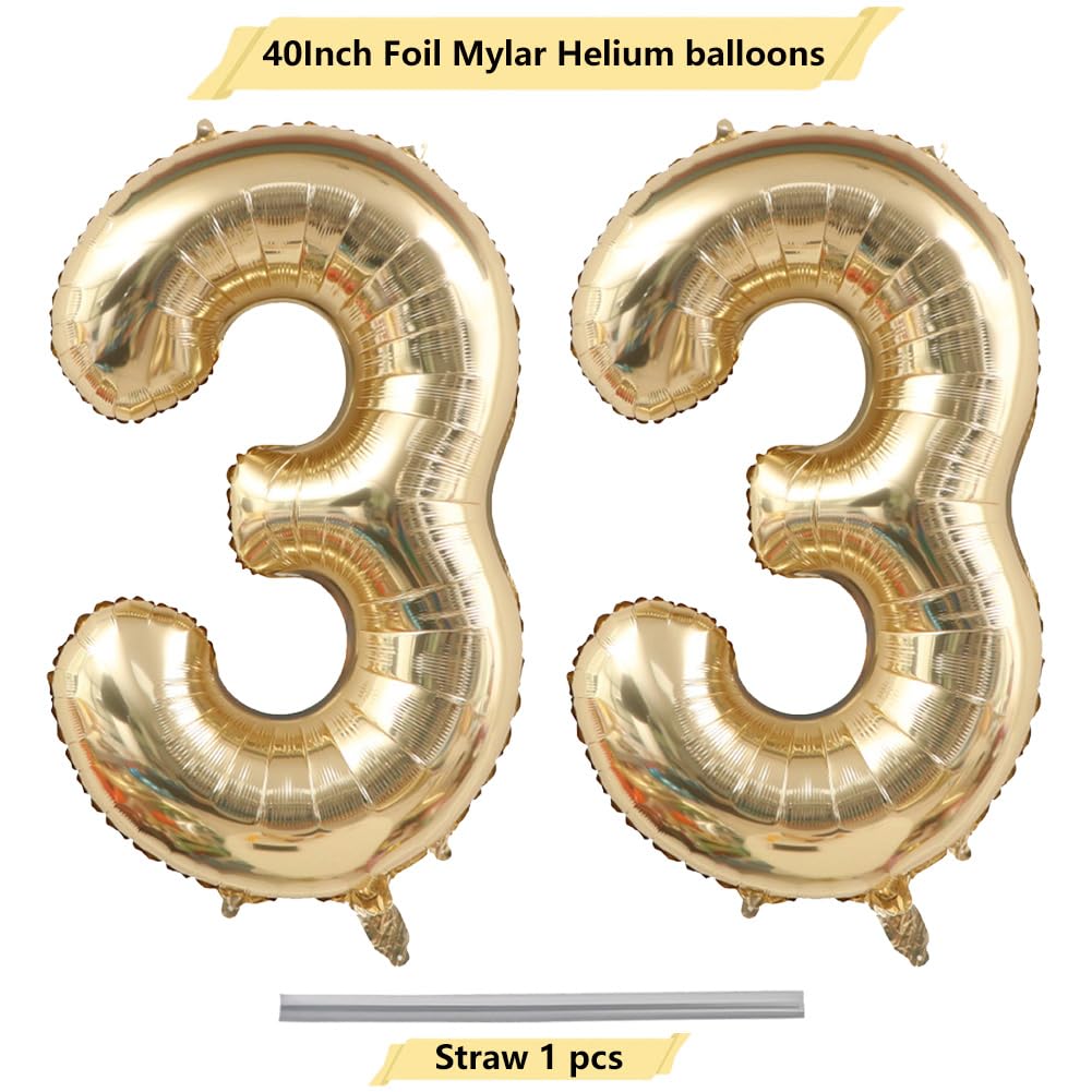 Package Included:Giant 40 inch light gold 33 balloon number (uninflated) + 1 straw.