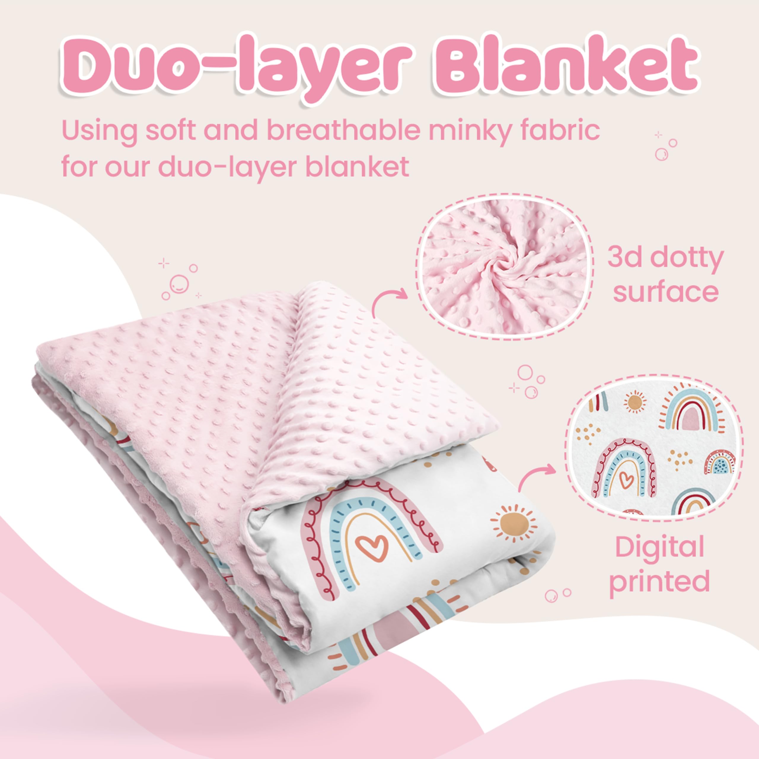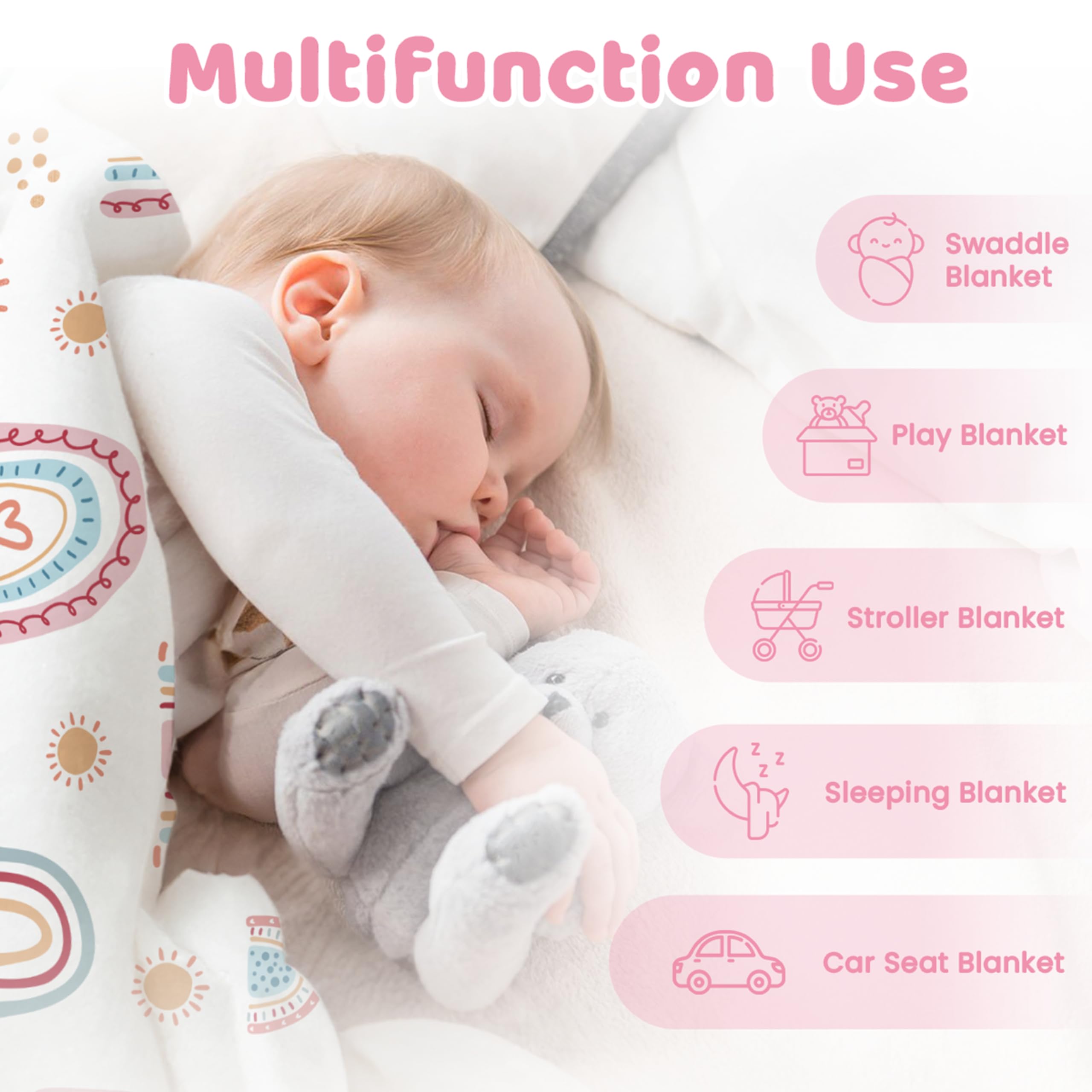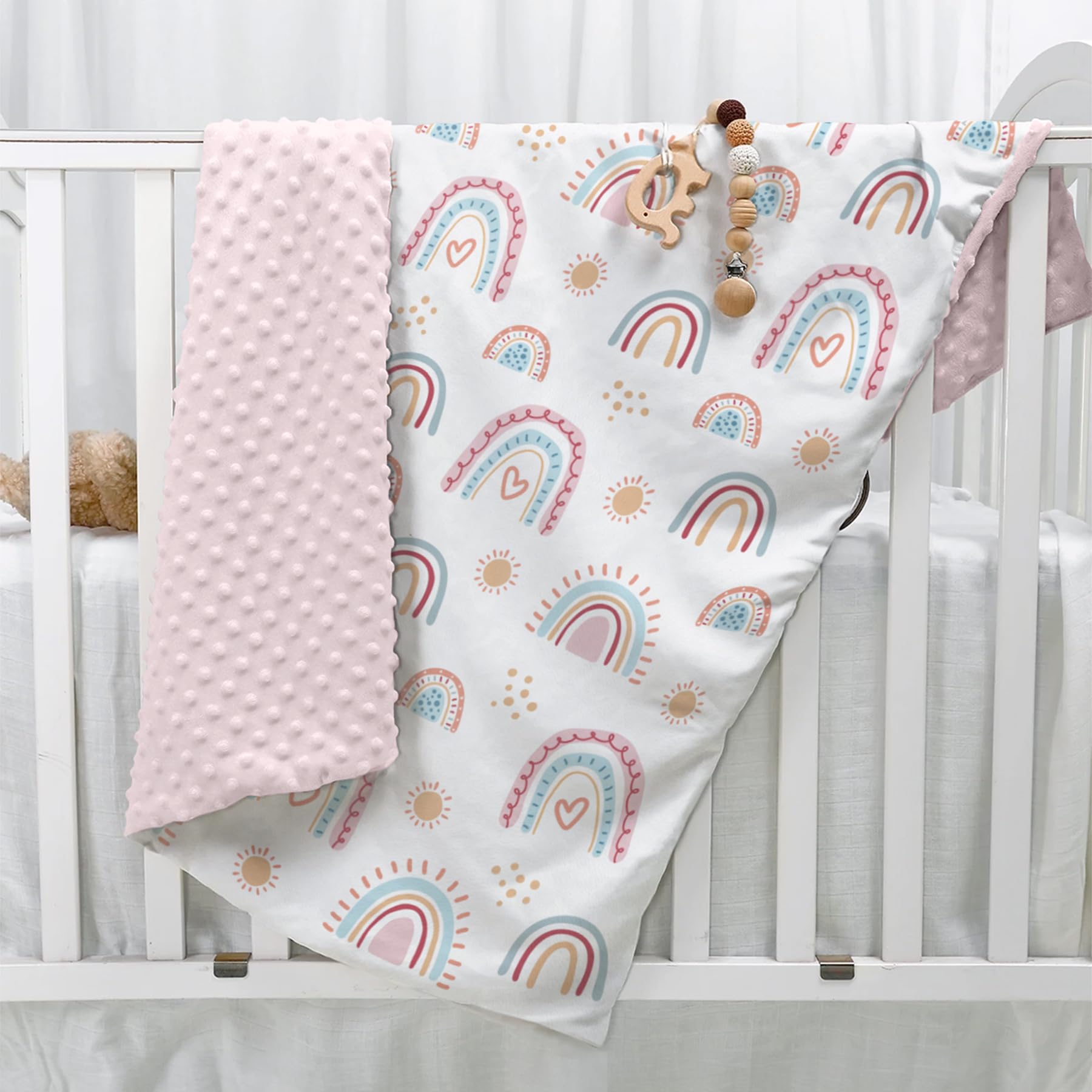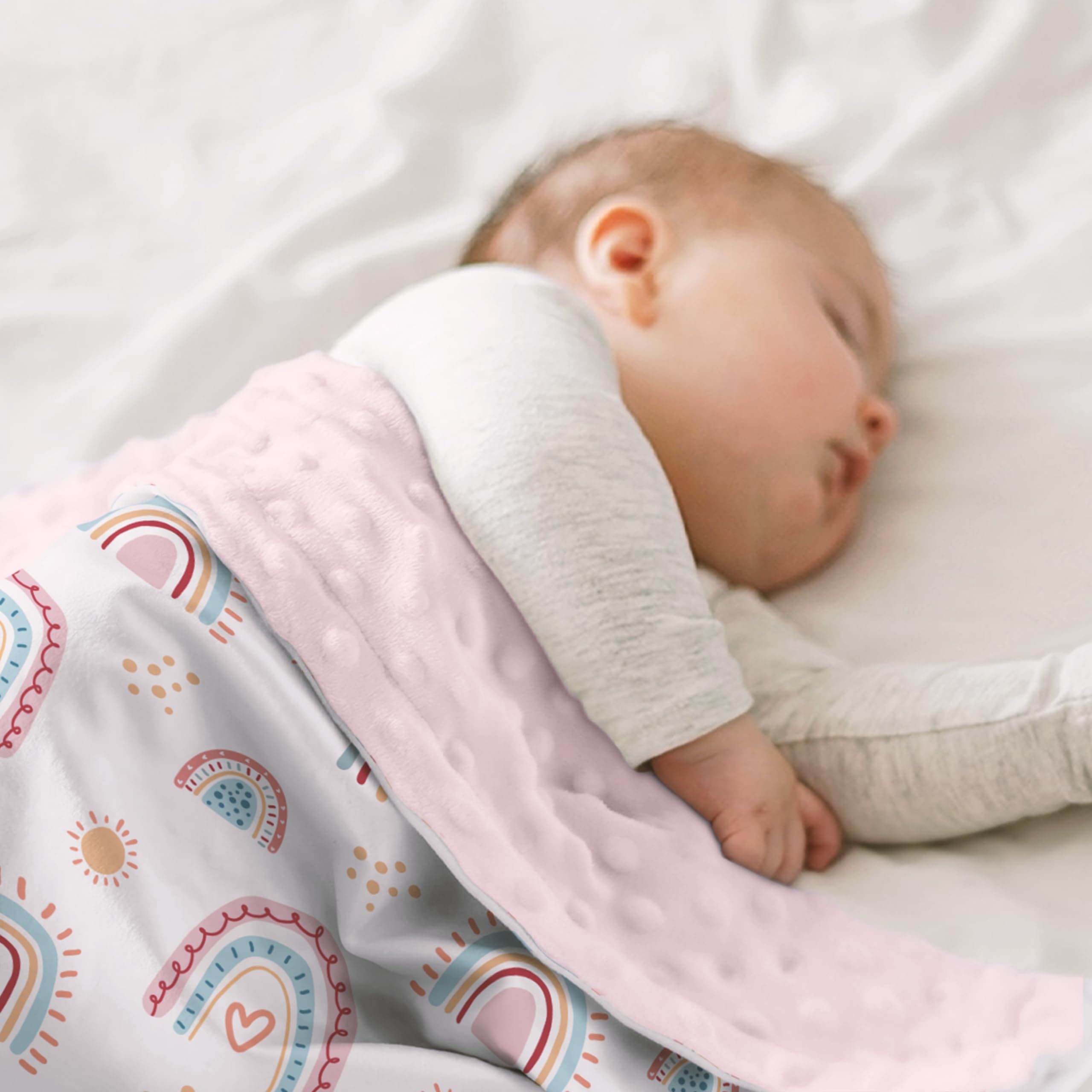 Comfortable material: the baby blanket is light, ensuring your little one stay comfortable all year round; one side features a smooth surface while the other is 3D dotted