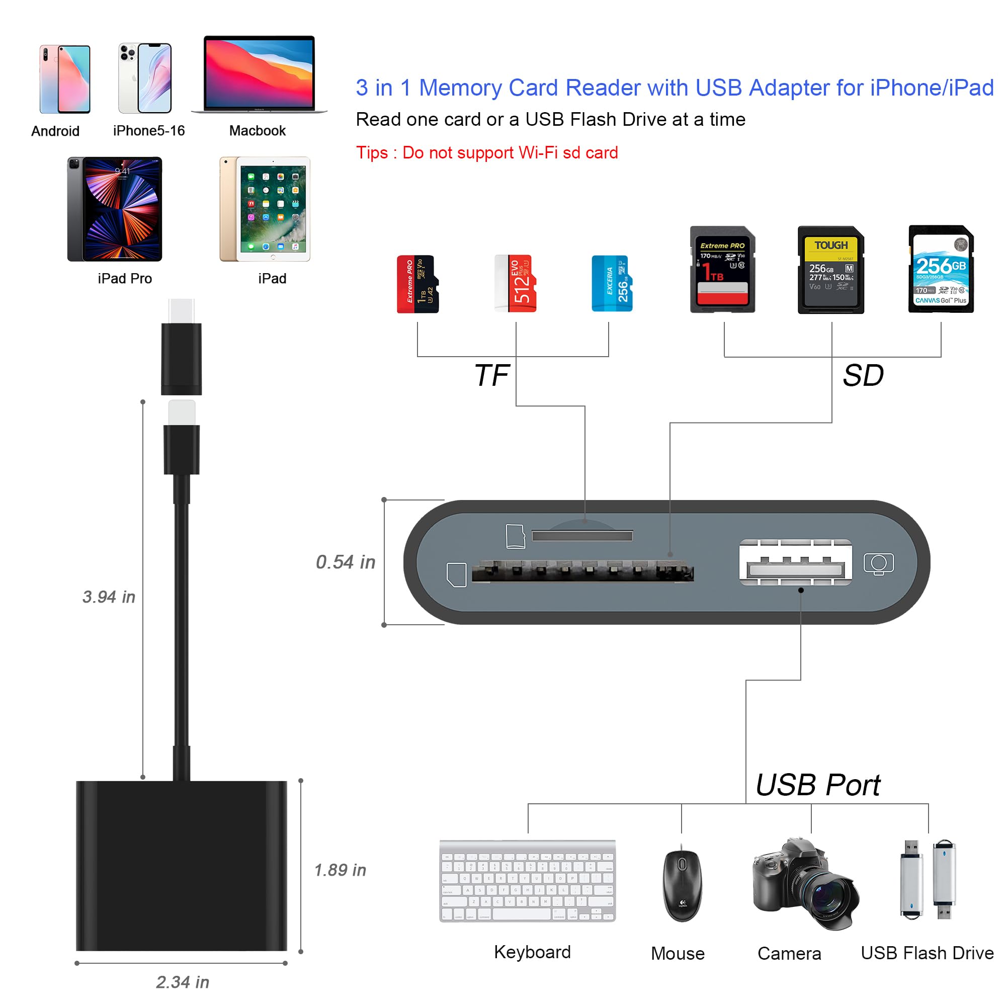 [Accessories for iPhone with Dual Card Slots]: This SZHAIYIJIN Memory Card Reader for iPhone Support SD Card and TF Card, Secure Digital (Standard SD/SDHC) and Micro SD(TF) card. Do NOT Support Wi-Fi SD Memory card.