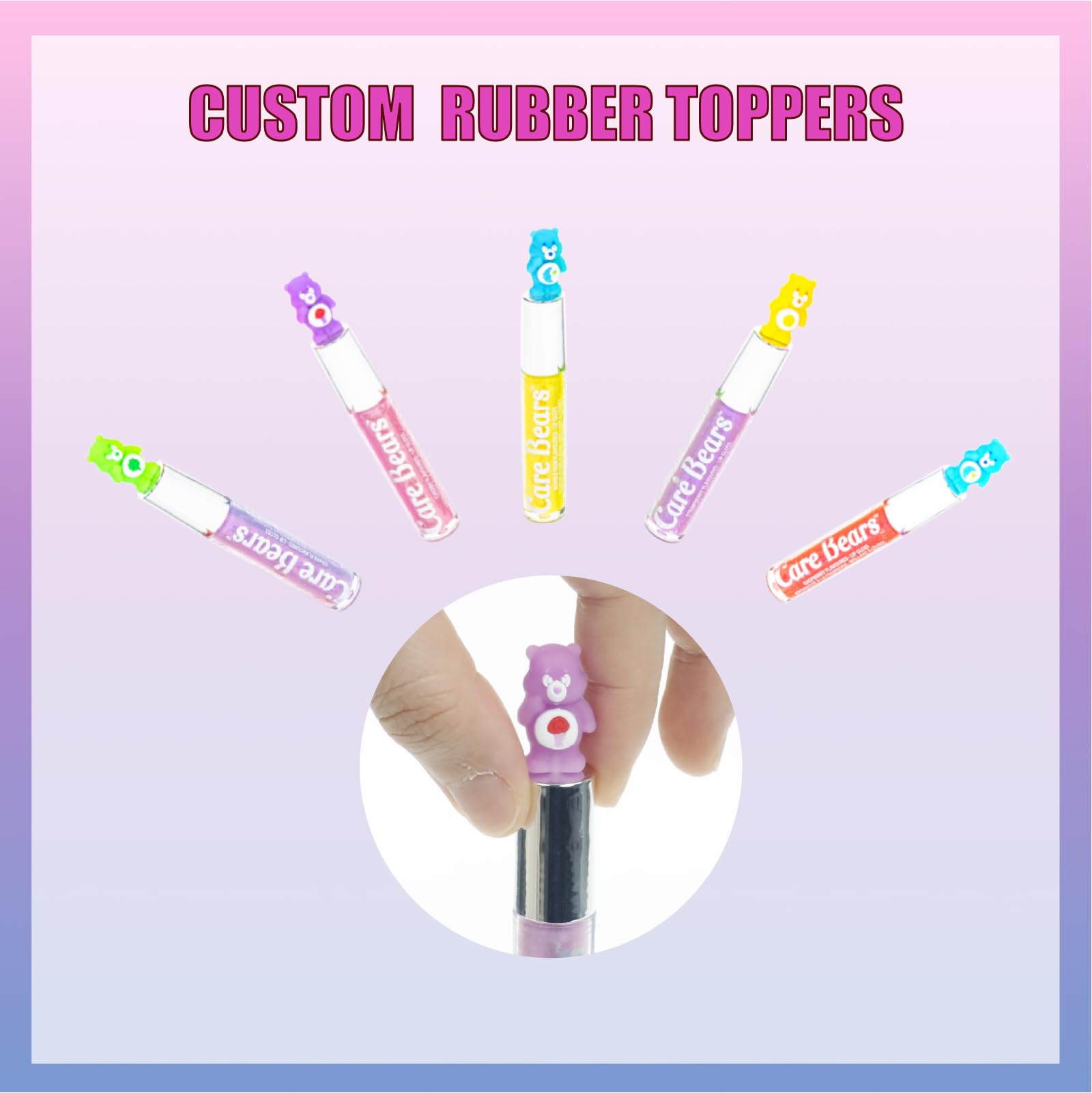 FAVORITE CHARACTERS - These glosses are topped off with her favorite Care Bears such as Funshine Bear, Cheer Bear, and Good Luck Bear…just to name a few! Kids will have fun showing their friends this spunky gloss.