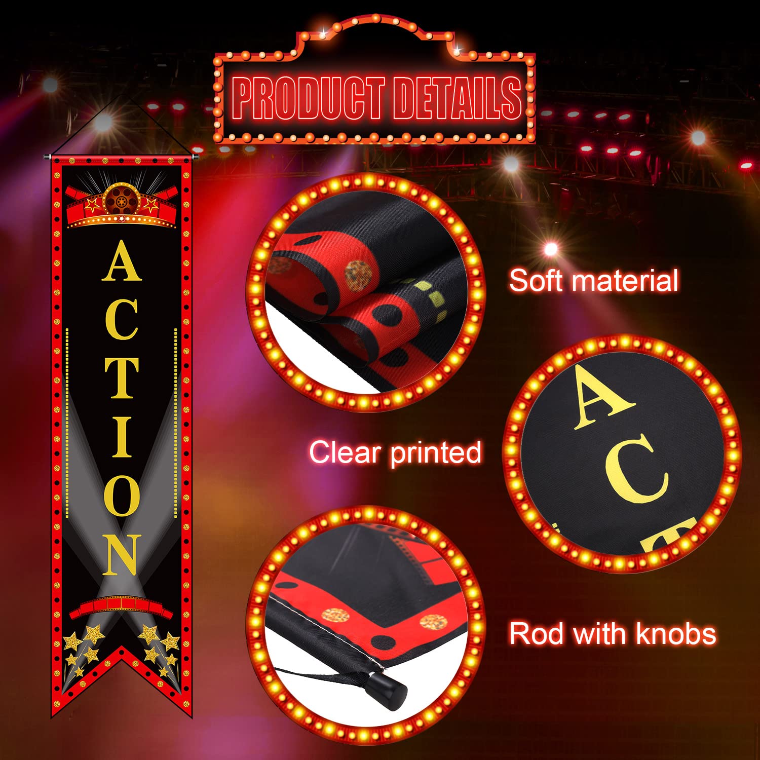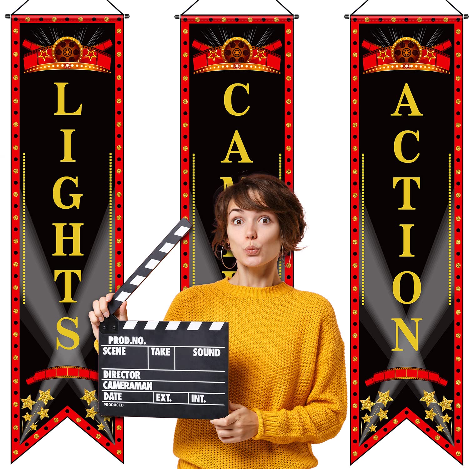 Movie Party Decorations: the movie theme porch sign include 1 piece "light" banner and 1 piece "camera" banner, 1 piece "action", movie banner easily to catch everyone's eye, suitable for movie night party front door decoration