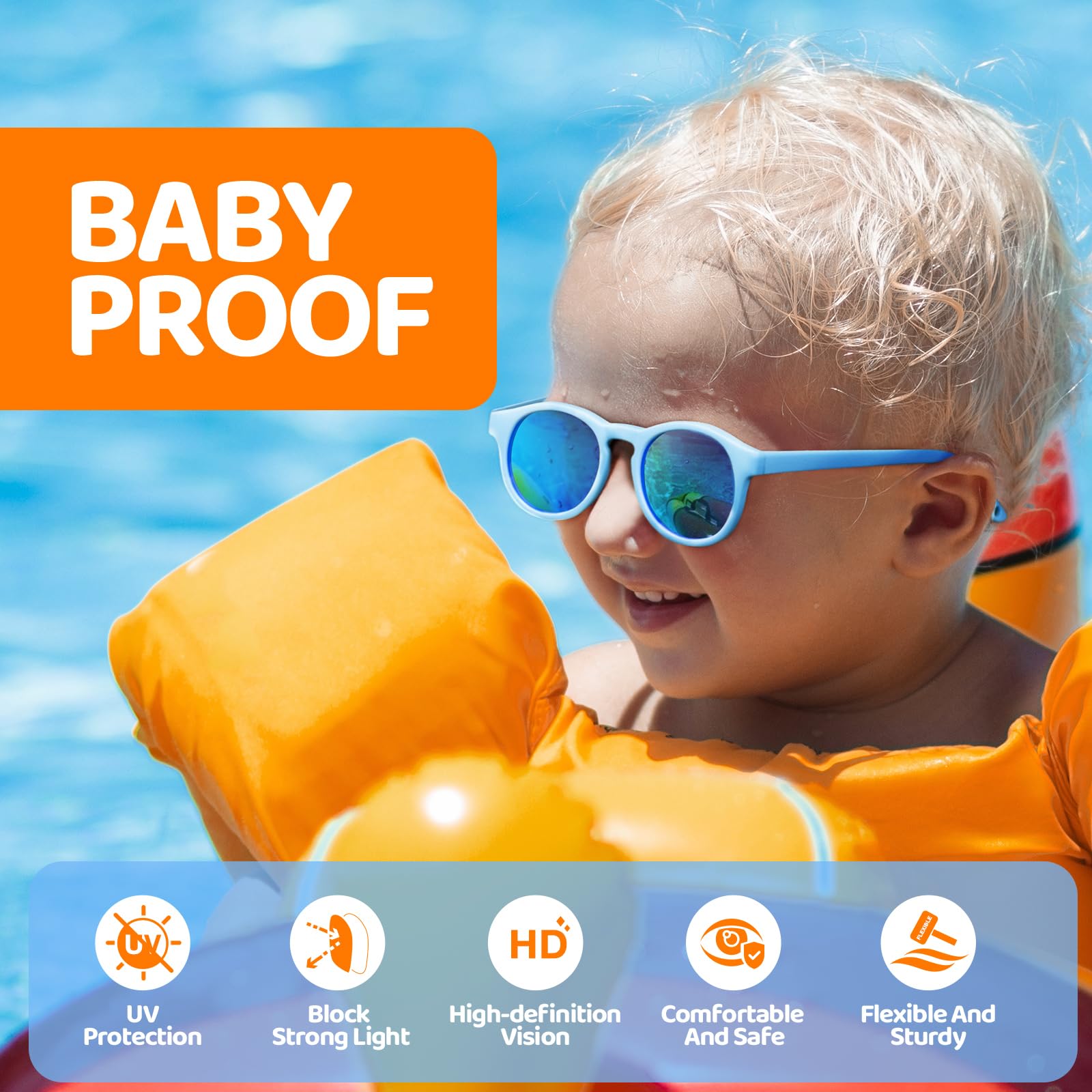 【Safety】 RIVBOS baby sunglasses are made with non-toxic TAC lenses and TR90 frames, ensuring they are completely safe for newborns, infants, and toddlers to wear.