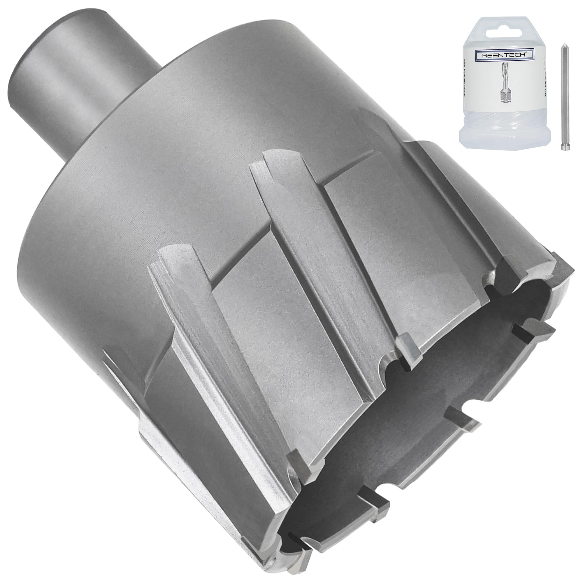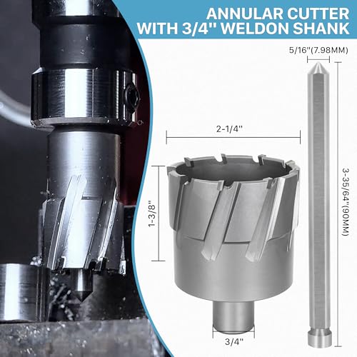 【Specifications】 - KEENTECH Annular Cutter features a premium carbide cutting edge for outstanding durability, making it ideal for drilling harder materials like stainless steel. It offers a 2-1/4" cutting dia and a 1-3/8" cutting depth, and comes with a free pilot pin. The 3/4" weldon shank design is compatible with various magnetic drills, including but not limited to Alfra, Evolution, Dewalt, Vevor, Zelcan and Hougen.