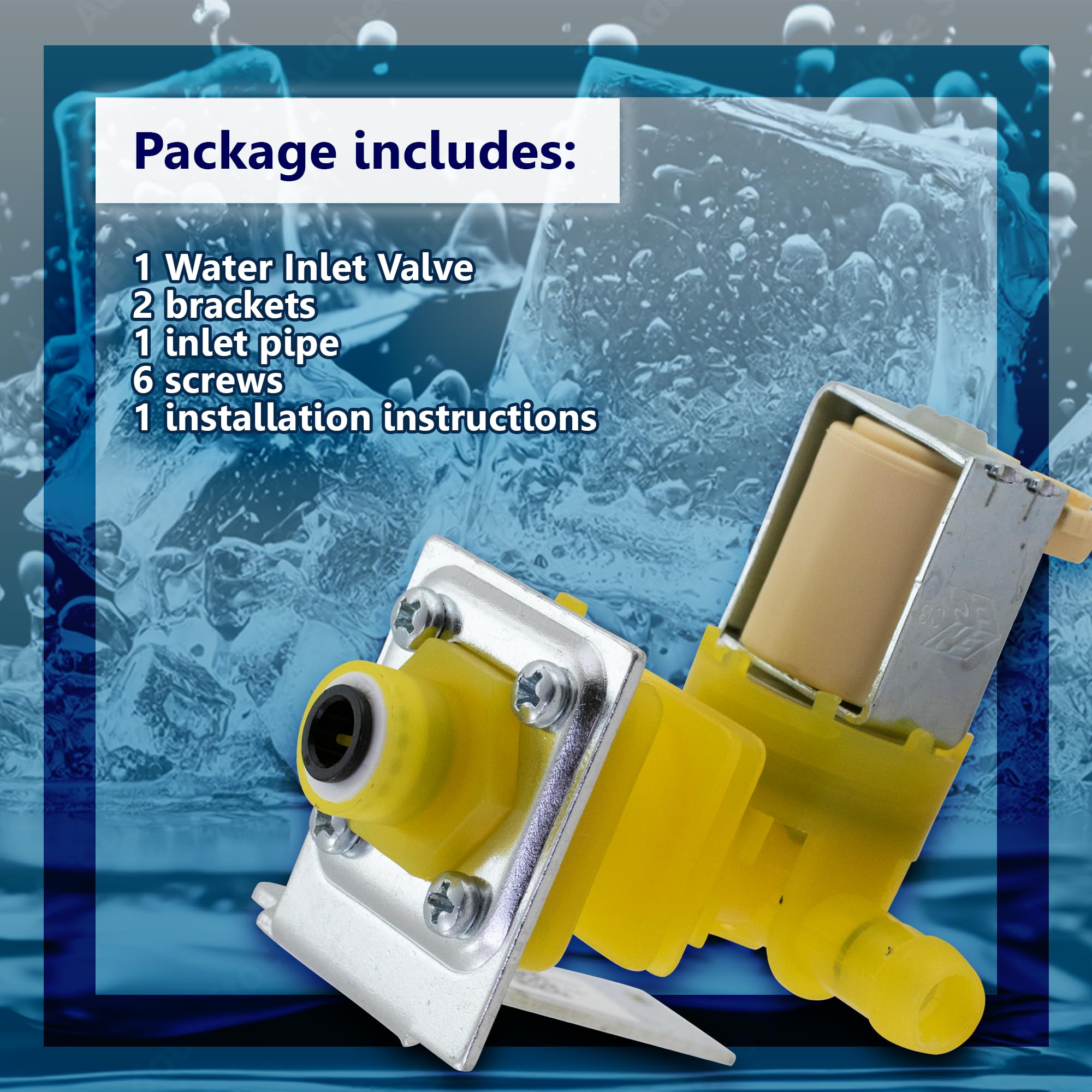 Package includes: 1 Water Inlet Valve, 2 brackets, 1 inlet pipe, 6 screws and 1 installation instructions