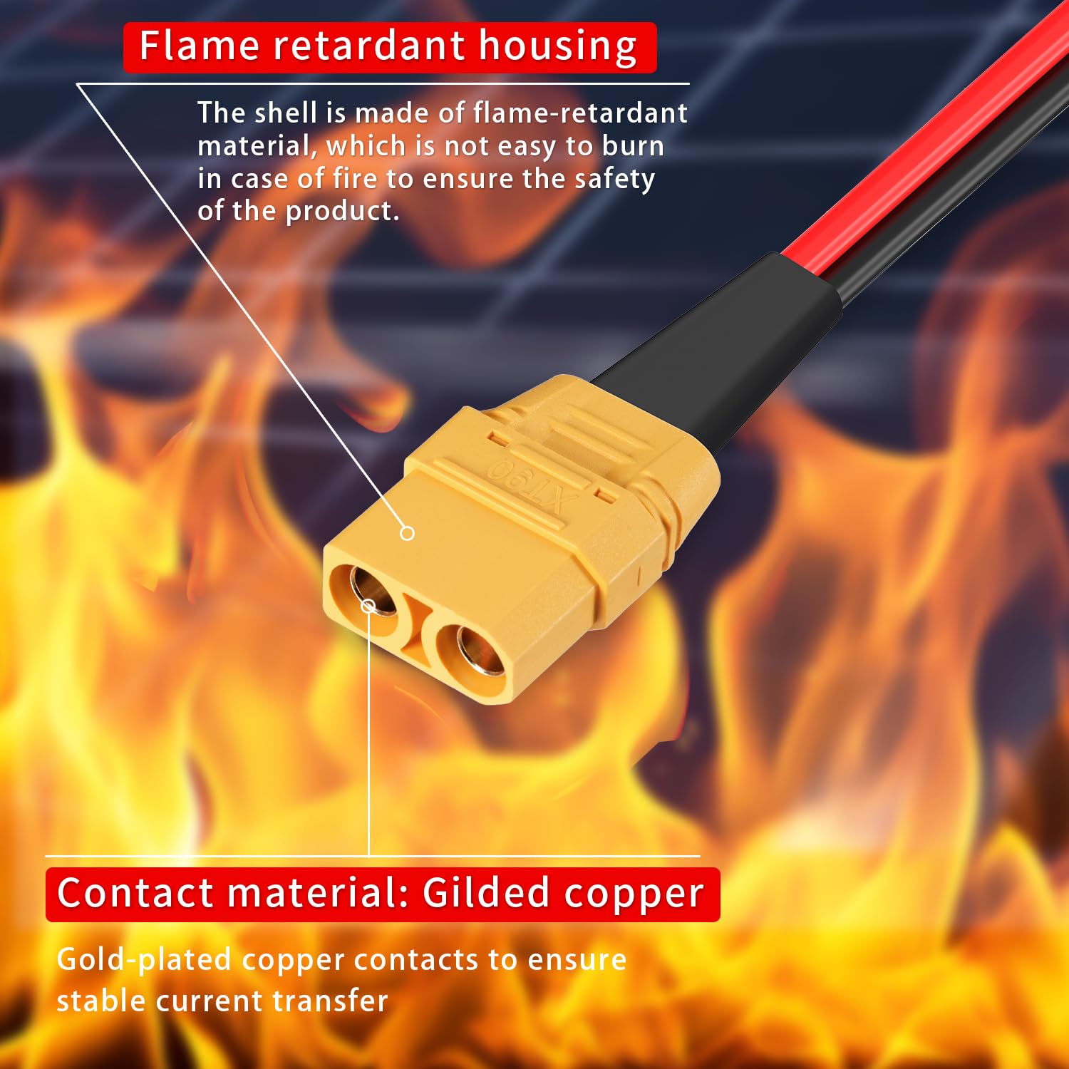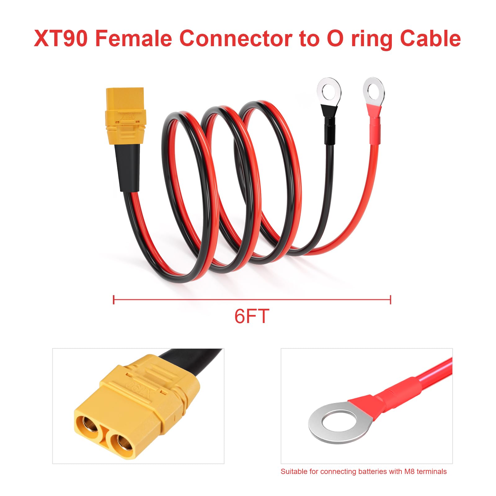 [Fireproof XT90 Connector]: The XT90 female connector's housing is made of high-quality, fire-resistant material, and the housing and heat-shrink tubing keep wires from being exposed, ensuring safety and durability. Rated Voltage 300V. Cable Length: 6FT
