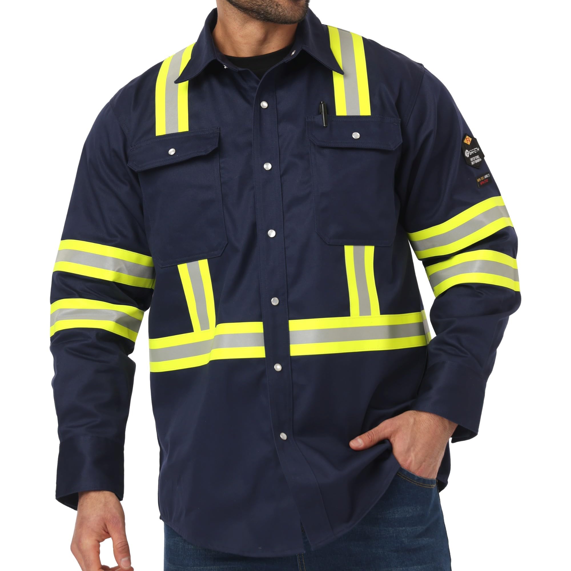 Practical Designed with Low-Light condition: The JKSafety Welding shirts features hi vis reflective strips on the chest, back, waist, and arms, enhancing 360°visibility to ensure co workers and machine operators can see you easily. The FR Clothing also includes a flame-resistant YKK snap-button closure for quick and easy wear, along with two snap-button chest pockets for convenient storage of personal items. Ideal for welders, ironworkers, construction workers. camisas fr para hombre de trabajo.