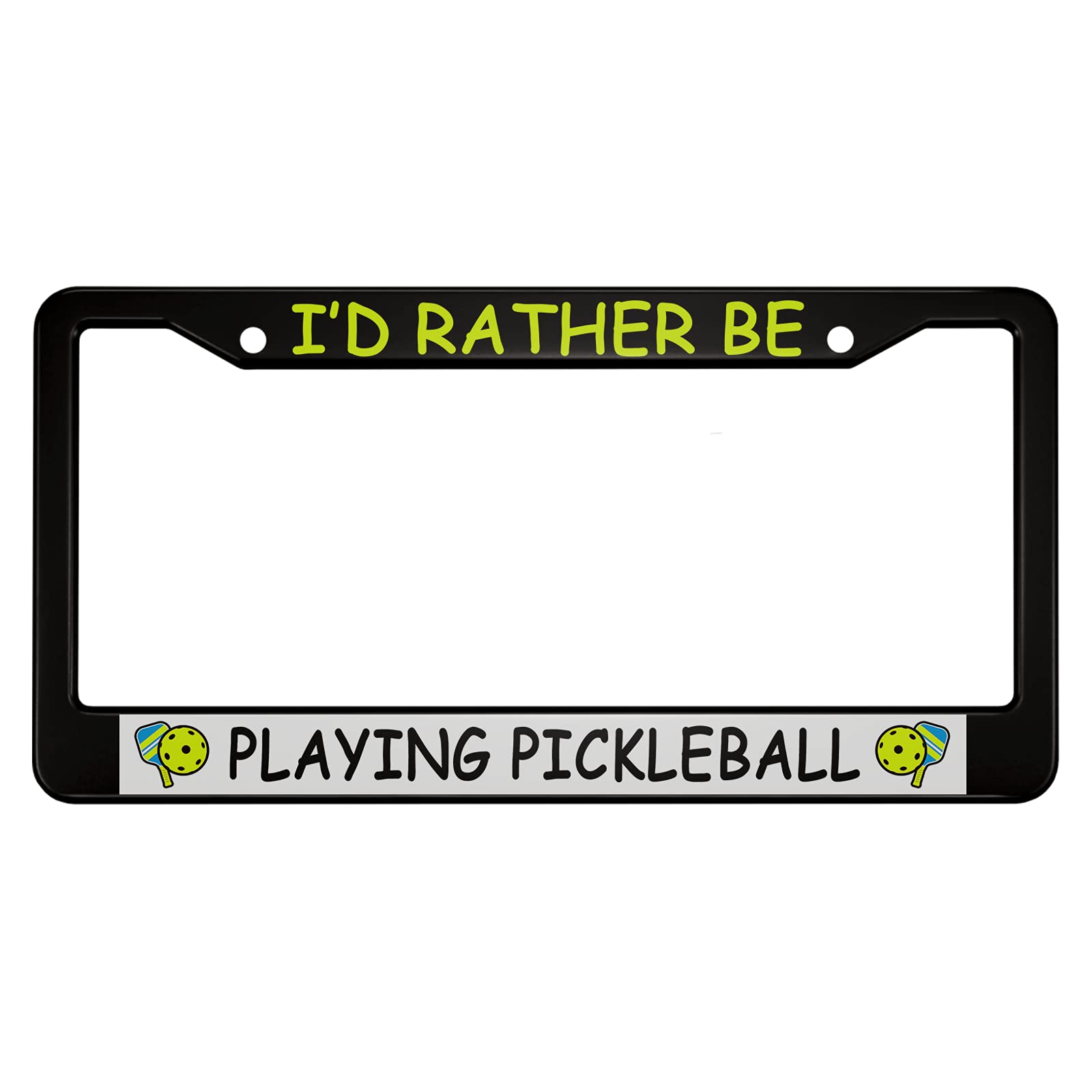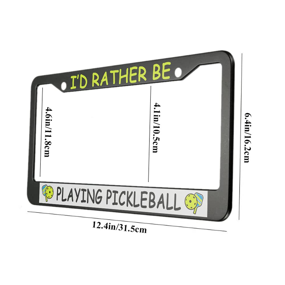 Our I'D Rather Be Playing Pickleball Aluminum Alloy License Plate Frame Green Black Pickle Ball and Racket Applicable to US Standard Car Metal Car Tag Frame(1 PACK) We fab these License plate frames out of an outdoor durable aluminum alloy composite material, to protect the image from fading and protect the image from road debris, extending the life of the graphic Durable aluminum frame with aluminum coating. This license plate holder is the perfect accessory for your vehicle. Please check the product image for frame size. Please measure your license plate to make sure the upper or bottom lip of the frame won't cover the state name. Specifications: Frame size: 12.4" X 6.4" Frame material: thin aluminum sheet metal Package Includes: 1 x License Plate Frame Tips: Sold individually (not a pair). Get one for the front and back of your vehicle. After-sales Service: If you have any questions, please contact us through our shop. We will reply within 24 hours.