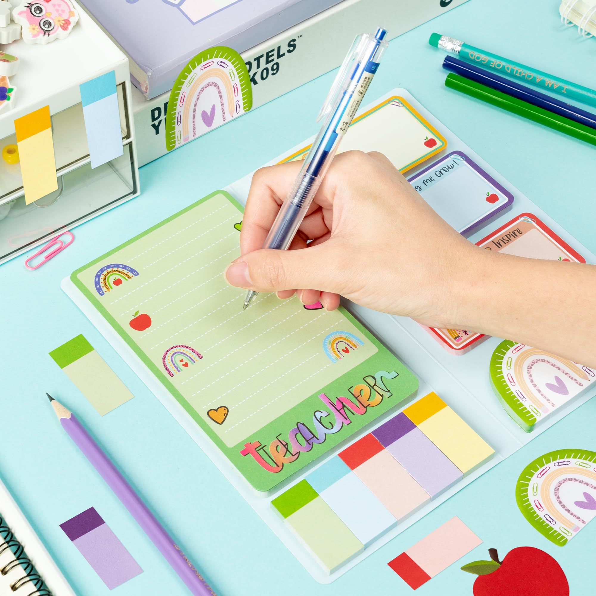 Teacher Sticky Notes Set: You will get a set of sticky notes, including many self-adhesive note pads in different styles and sizes. 50 sheets per pad, 550 sheets in total. Meet your various needs