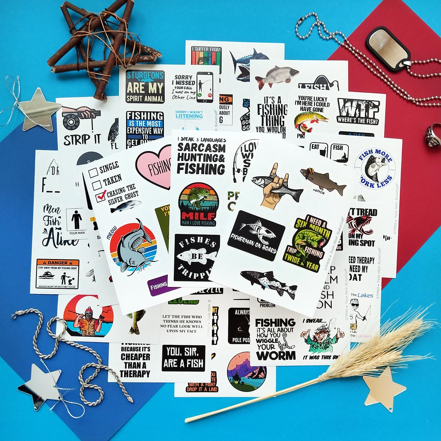 🎣USABLE STICKER SHEETS - Our sticker pack contains several sheets with colorful stickers. This arrangement is very convenient for use and storage. Stickers can be reused several times by sticking it back on the sheet.